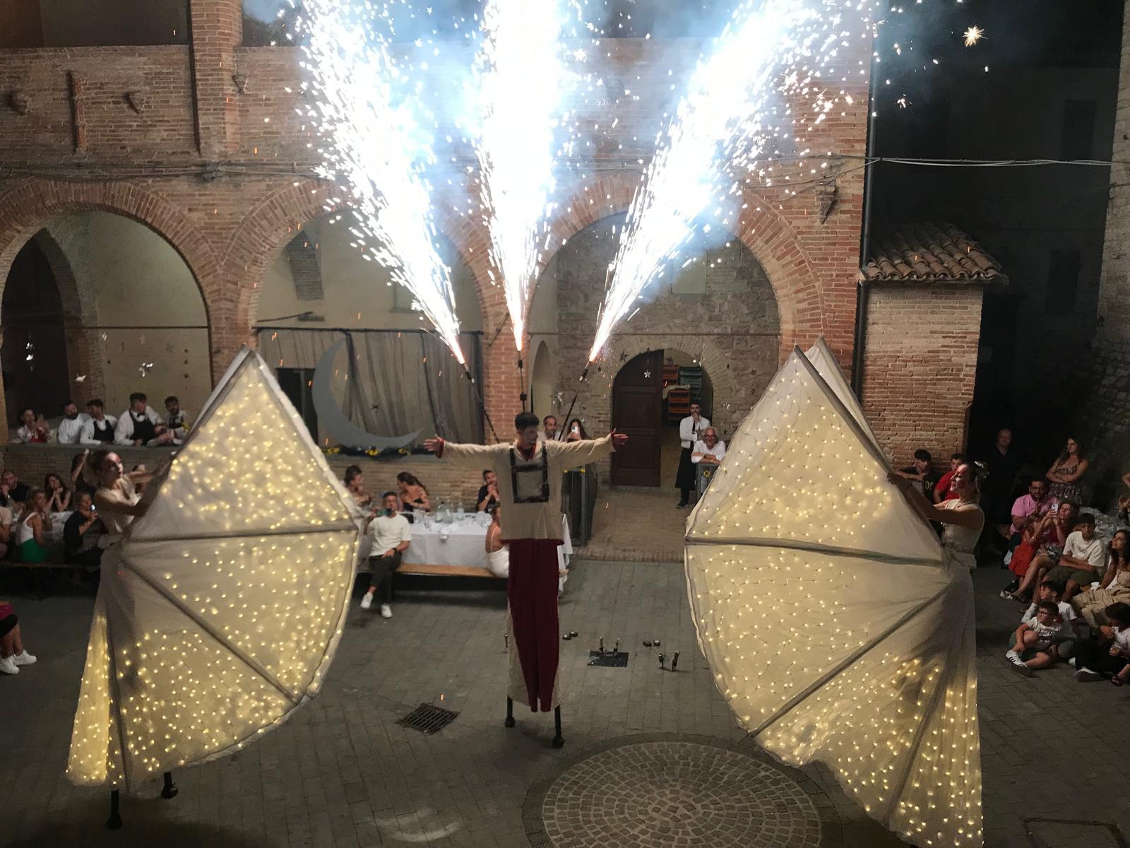 Oltre 200 ospiti per la terza edizione della ‘Cena al Castello’ di Sant’Eraclio, organizzata venerdì scorso dalla Comunanza agraria di Sant’Eraclio e dall’associazione ‘Tre cannelle’. E’ stata una bella serata all’insegna della socialità, della riscoperta del Castello dei Trinci e, quest’anno, soprattutto della solidarietà. Le quote di partecipazione, al netto dei costi sostenuti dall’organizzazione, sarà devoluta alla fondazione Airc. Alla serata hanno partecipato anche il sindaco Stefano Zuccarini e gli assessori Michela Giuliani, Elisabetta Ugolinelli e Lorenzo Schiarea. A presentare l’evento Claudio Bianchini. In questa edizione la cucina è stata curata dallo chef Stefano Marconi, dell’osteria ‘Cuore Piccante’. Hanno intrattenuto gli ospiti il pianista Lorenzo Marrani con la cantante Lisa Primavera. Tra le portate della cena anche gli spettacoli pirotecnici della Compagnia teatrale Accademia Creativa. Intervenuta la delegata Airc Laura Radi.