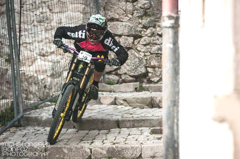 Per l’ottava edizione della Downtown Castel di Sangro, come preannunciato alla vigilia della gara,  assistiamo al “solito copione”: Petrucci (team Cingolani) domina su tutti e si impone ancora una volta, seguito come un’ombra da Emanuele “Stronky” Grimani del 2010Gravityteam e da Lorenzo Ballarini (TecnoBike). Una curiosità: i downhiller sono tutti di Terni anche se militano in team diversi. La gara si è svolta nel centro storico del caratteristico borgo in provincia dell’Aquila, snodandosi dalla base del castello, giù fino alla piazza, correndo all’interno delle mura megalitiche che ancora evocano le gesta degli antichi eroi sanniti. Un percorso sicuramente atipico ma ricco di fascino, dove serve tantissima concentrazione per scendere veloci tra stretti vicoli, rasentando muri e colonne e saltando intere rampe di scale, tra due ali di folla esultante.