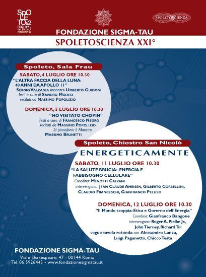 ” A luglio l'iniziativa principe di Fondazione Sigma-tau, Spoletoscienza, nell'ambito del celebre Festival dei Due Mondi di Spoleto, rinnova la sua centralità nel dibattito scientifico nazionale. Quest'anno, il programma per la ventunesima edizione proporrà una galleria di incontri, letture, dibattiti nella cornice del più antico e oggi rinnovato, festival di arte, cultura e spettacolo del nostro Paese: quello Spoleto Festival dei Due Mondi di cui fu fondatore il Maestro Giancarlo Menotti e che ora affronta la sua seconda edizione, la 52° in assoluto, sotto la guida di Giorgio Ferrara.