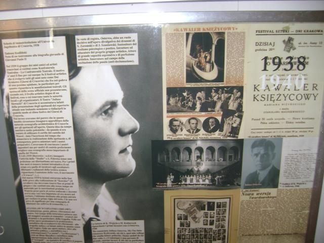 Ai pannelli che narrano il legame tra il giovane polacco e il teatro (Karol Wojtyla fu attore, regista, ma anche critico e drammaturgo, come spiega il saggio di Jan Ciechowicz) si abbinano, nelle particolari nicchie della stanza, alcune opere di arte popolare religiosa della Polonia. Statuine, icone e dipinti che sono quelli che rappresentano l'arte con cui papa Giovanni Paolo II era in contatto durante la sua gioventù. Oggetti collezionati da Marco Querèl, da anni legato alla Polonia. E proprio il curatore della mostra, durante l'inaugurazione, ha voluto raccontare il suo incontro con il pontefice, 25 anni fa, al termine di un'udienza generale a Roma dove accompagnava una delegazione polacca. Proprio a Roma domani Querèl si recherà per partecipare alle celebrazioni promosse in occasione del trentesimo anniversario dall'avvio del pontificato di papa Wojtyla, scomparso 3 anni e mezzo fa tra la commozione del mondo intero.