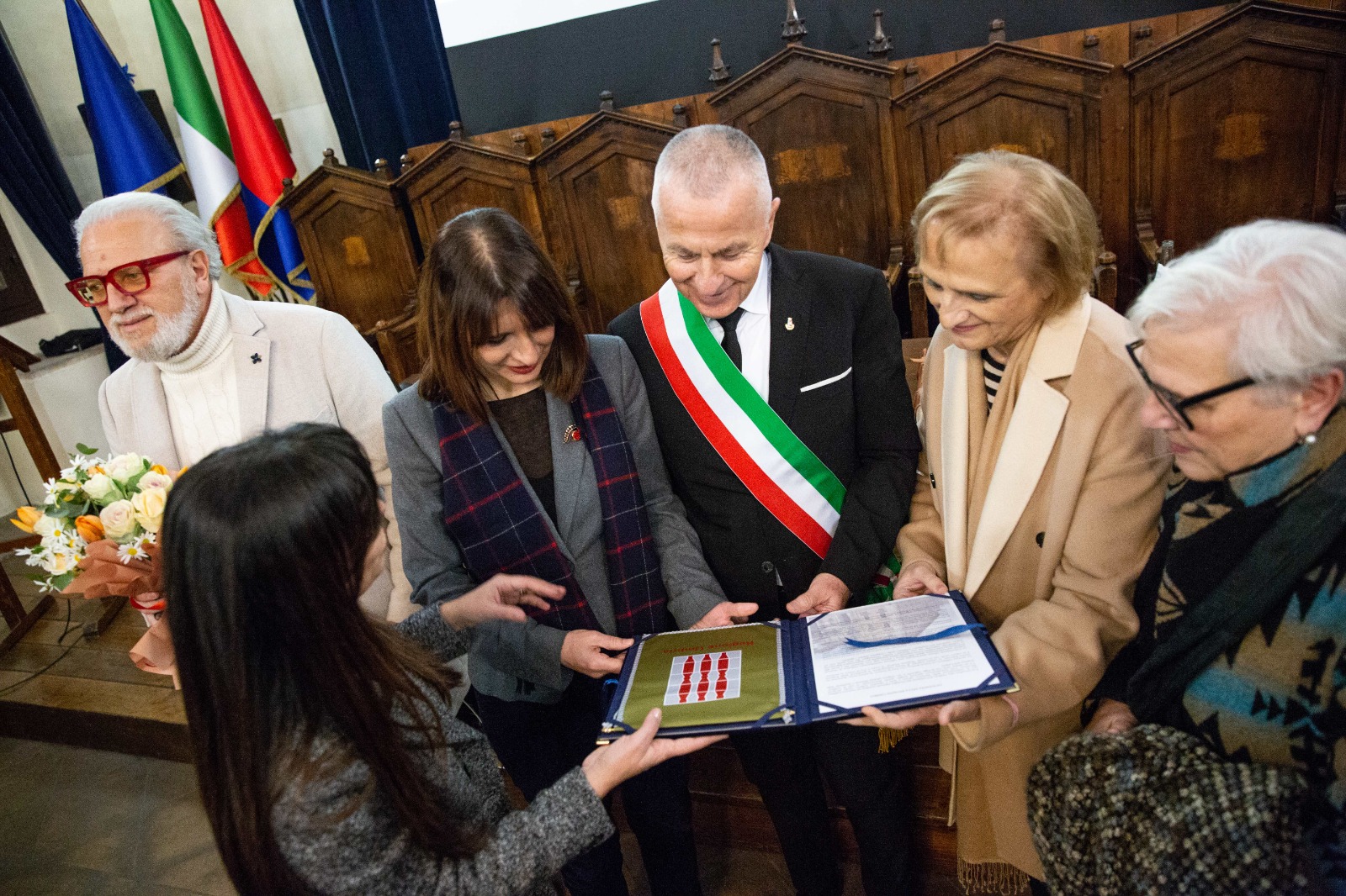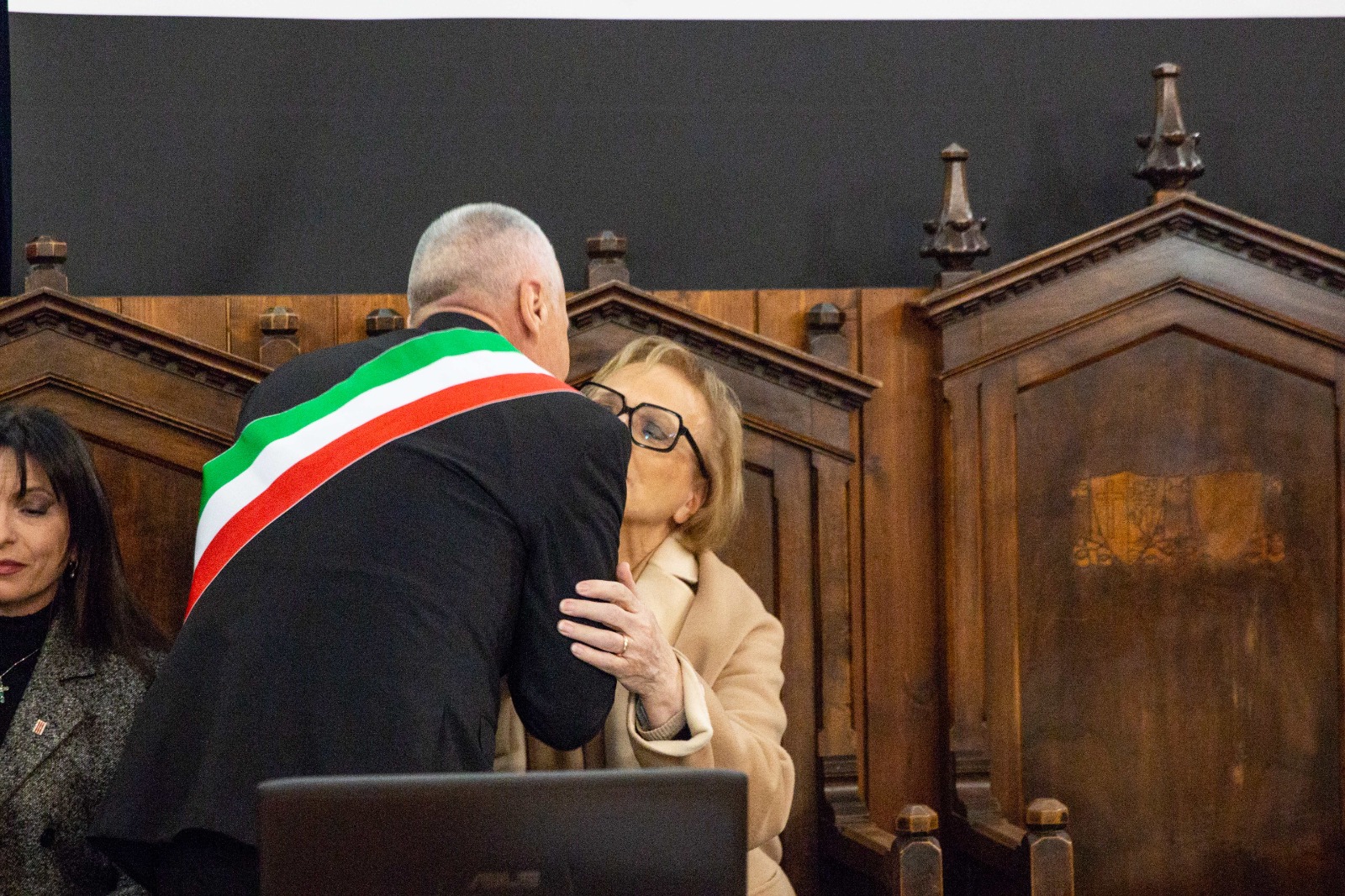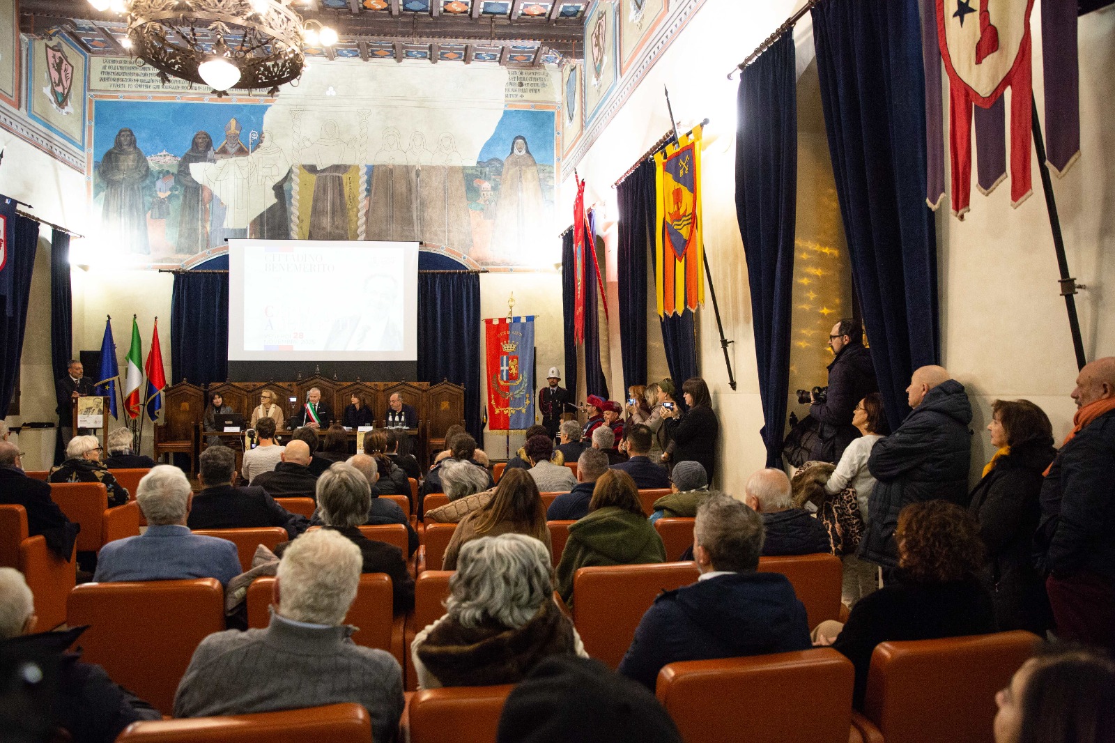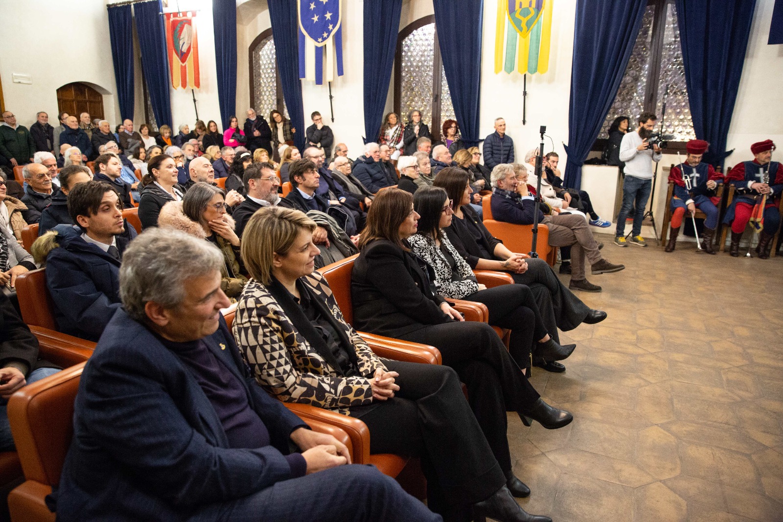 L’idea del conferimento della benemerenza, accolta dal Consiglio comunale, è stata sostenuta anche da diverse realtà associative della città, tra cui l’Ente Calendimaggio di Assisi, la Nobilissima Parte de Sopra, la Magnifica Parte de Sotto, la Società Culturale di Assisi Arnaldo Fortini, l’Associazione Ponte Levatoio APS, l’Associazione Birba APS, l’Associazione Sbandieratori di Assisi, l’Accademia Properziana del Subasio, l’Associazione Assisi Mia e sono state diverse le testimonianze portate anche durante la cerimonia di consegna della benemerenza. (Foto di Andrea Cova)