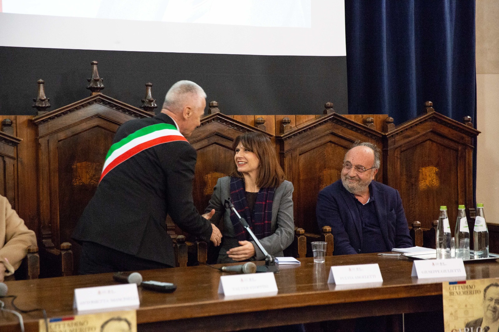 Carlo Angeletti, fondatore del Piccolo Teatro degli Instabili, è “Benemerito della Città di Assisi” alla memoria. La cerimonia si è svolta in una Sala della Conciliazione gremita di cittadini e autorità, a testimonianza del grande affetto della comunità assisana verso un instancabile animatore della vita culturale e sociale della città, scomparso prematuramente il 28 novembre di dieci anni fa.
