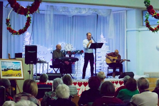 Nella sala tra ghirlande e Merry Christmas, un concerto di due ore che ha visto protagonisti i folignati Francesco Proietti (pianoforte), Filippo Sergi (chitarra) e Antonio Tebaldi (voce), sul palco con una scaletta di brani che ha subito acceso la festa, con le più famose canzoni degli anni Settanta, ma anche qualcosa di più datato che ha sfiorato gli anni Sessanta. Battisti, Dalla, l’immancabile Morandi, ma anche l’allegria di canzoni in romanesco per un repertorio vasto e di grande godibilità. Brani che già alle prime battute hanno compiuto quello che al gruppo appare sempre come una sorta di miracolo. Per loro un’emozione che non ha pari. Donare gioia, accendere un sorriso, è il loro scopo.