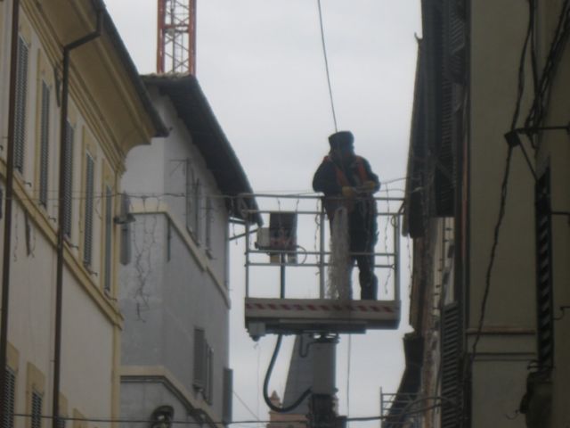 È in arrivo a Foligno lo “spirito” del Natale. Non tanto per l’abbassarsi delle temperature, il maltempo e l’avvicinarsi graduale della prima domenica di Avvento (28 novembre), quanto piuttosto per la trasformazione evidente che da giovedì scorso sta vivendo la città. Sono infatti già arrivate e stanno continuando a diffondersi per le vie del centro storico di Foligno, grazie alla Confcommercio Territoriale di Foligno e Comprensorio, le luminarie natalizie. Sono tanti i cittadini che, a passeggio per la città, osservano col naso all’insù e con curiosità il lavoro degli operai, impegnati ad allestire da un lato all’altro dei palazzi le decorazioni luminose del Natale. Ieri mattina stavano lavorando su via Gramsci e da giovedì erano già visibili in strade come via Garibaldi e via Umberto I. Non ancora accese naturalmente.
