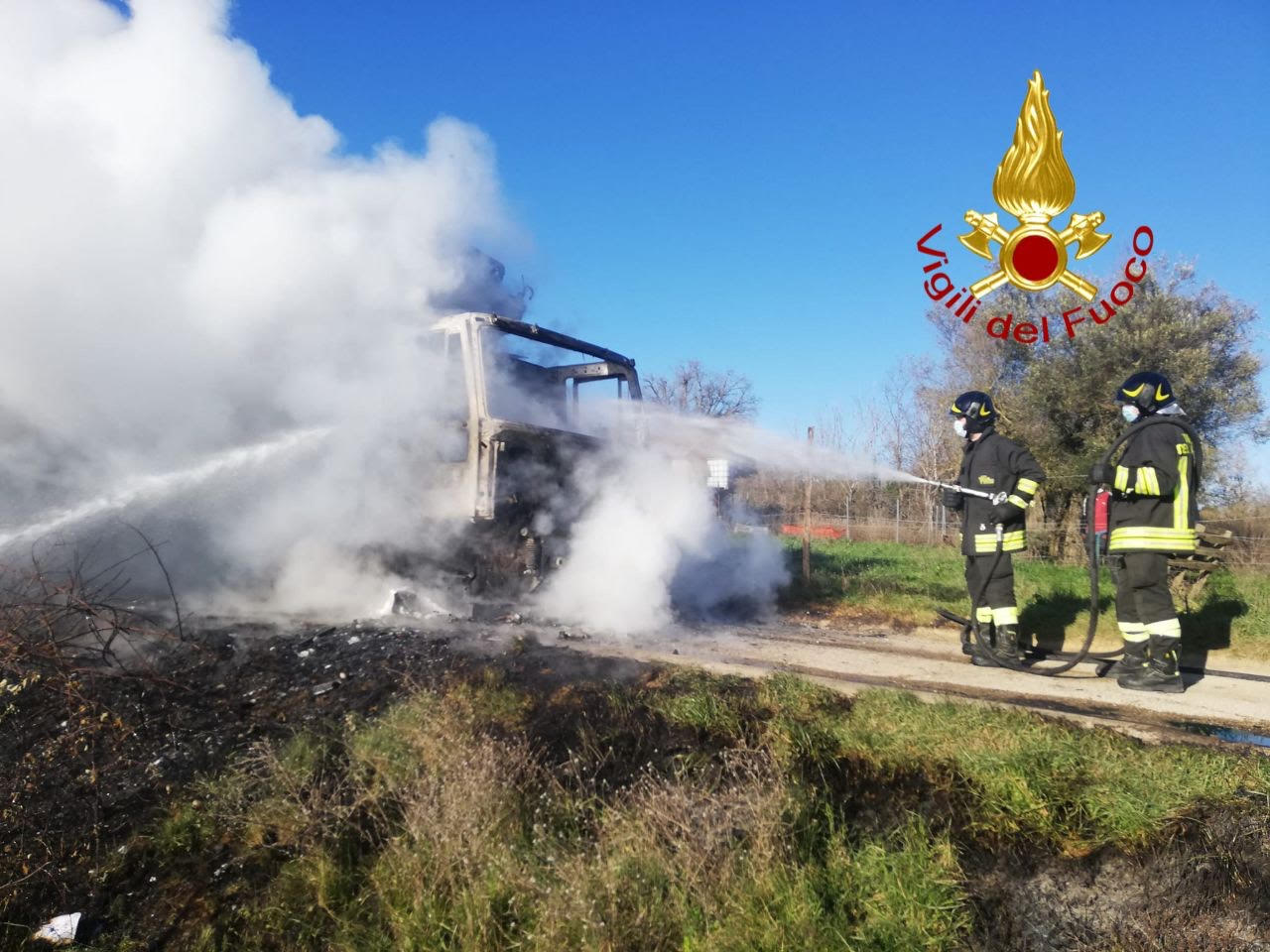 Le fiamme sono state domate, ma il mezzo è andato completamente distrutto.