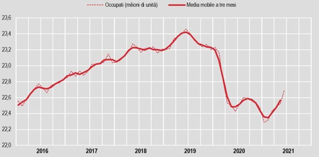 ROMA (ITALPRESS) – Nel mese di giugno 2021 si registra, rispetto al mese precedente, un aumento degli occupati e una diminuzione sia dei disoccupati sia degli inattivi. Lo rileva l’Istat. La crescita dell’occupazione (+0,7%, pari a +166mila unità) si osserva per gli uomini, le donne, i dipendenti, gli autonomi e per tutte le classi d’età. Il tasso di occupazione sale al 57,9% (+0,5 punti). Anche la diminuzione del numero di persone in cerca di lavoro (-5,1% rispetto a maggio, pari a -131mila unità) riguarda entrambe le componenti di genere e tutte le classi d’età. Il tasso di disoccupazione scende al 9,7% (-0,5 punti) e torna, dopo cinque mesi, sotto la soglia del 10%; tra i giovani si attesta al 29,4% (-1,3 punti). Tra maggio e giugno si riduce anche il numero di inattivi tra i 15 e i 64 anni (-0,3%, pari a -34mila unità); in questo caso il calo coinvolge le donne, i minori di 24 anni e gli ultra 50-enni. Il tasso di inattività scende al 35,8% (-0,1 punti). Confrontando il secondo trimestre 2021 con il precedente, il livello dell’occupazione è più elevato dell’1,0%, con un aumento di 223mila unità.