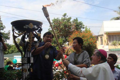 A Guiguinto, città a nord delle filippine di 70.000 abitanti, facente parte della Provincia di Bulacan e della diocesi di Malolos, si trova la delegazione ufficiale di Cascia, guidata dall'arcivescovo di Spoleto-Norcia, mons. Riccardo Fontana, dal sindaco di Cascia, prof. Gino Emili, e dal Rettore della basilica di S. Rita a Cascia, padre Mario De Santis. Ci sono anche: la moglie del sindaco Emili, l'assessore al turismo del comune di Cascia, Marco Altieri, il consigliere comunale, dott. Angelo Gentili, padre Randy Tibayan, parroco di S. Rita a Spoleto, filippino, e frà Paolo Zecca, vice rettore della basilica di Cascia. La fiaccola è stata accesa sul sagrato della chiesa di S. Rita dal sindaco di Guiguinto, prima della messa celebrata dal vescovo di Malolos, mons. Josè F. Oliveros. C'era anche il provinciale degli agostiniani nelle Filippine, un rappresentante del consiglio generalizio degli agostiniani e madre Monica Gianfrancesco, italiana, badessa del monastero agostiniano di Bulacan, avviato alcuni anni fa da madre Natalina Todeschini, attuale badessa del monastero di S. Rita a Cascia.