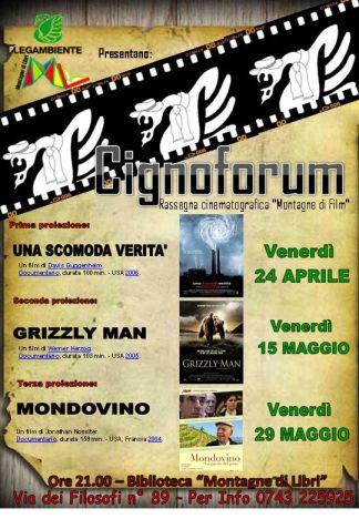 Inizia oggi , venerdì 24 Aprile, alle ore 21.00 presso la Biblioteca “Montagne di Libri” in via dei Filosofi 89 ( presso sede Comunità montana – Sportello del Cittadino), il Cignoforum – Montagne di film organizzato da Legambiente Spoleto.