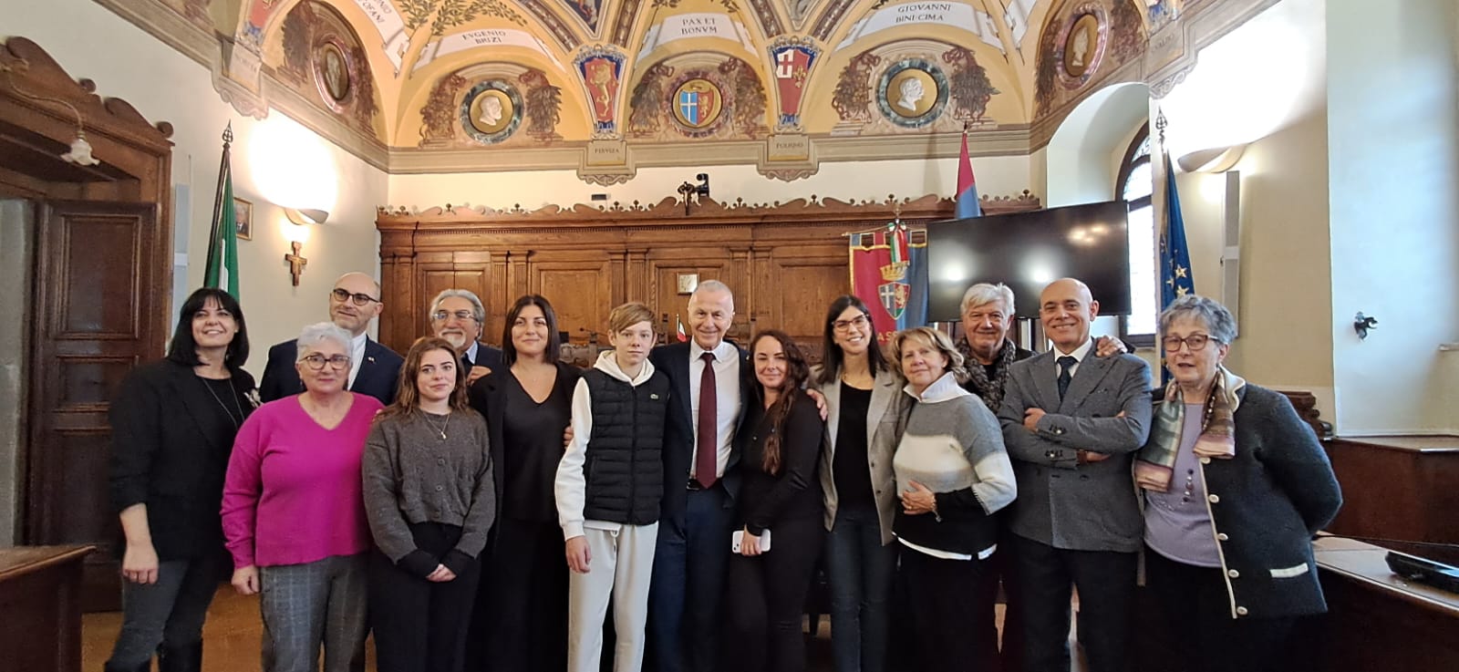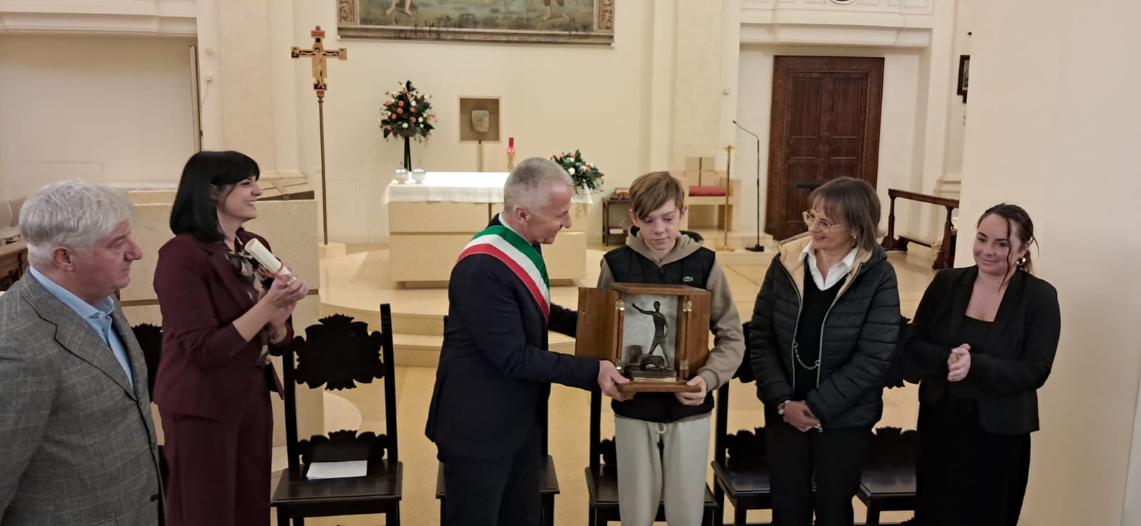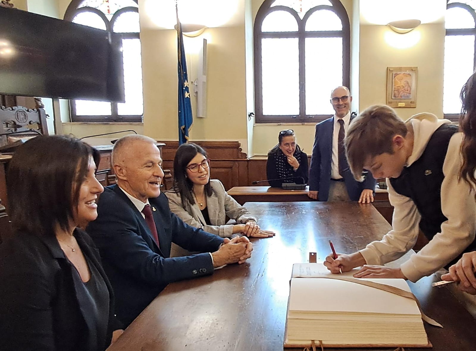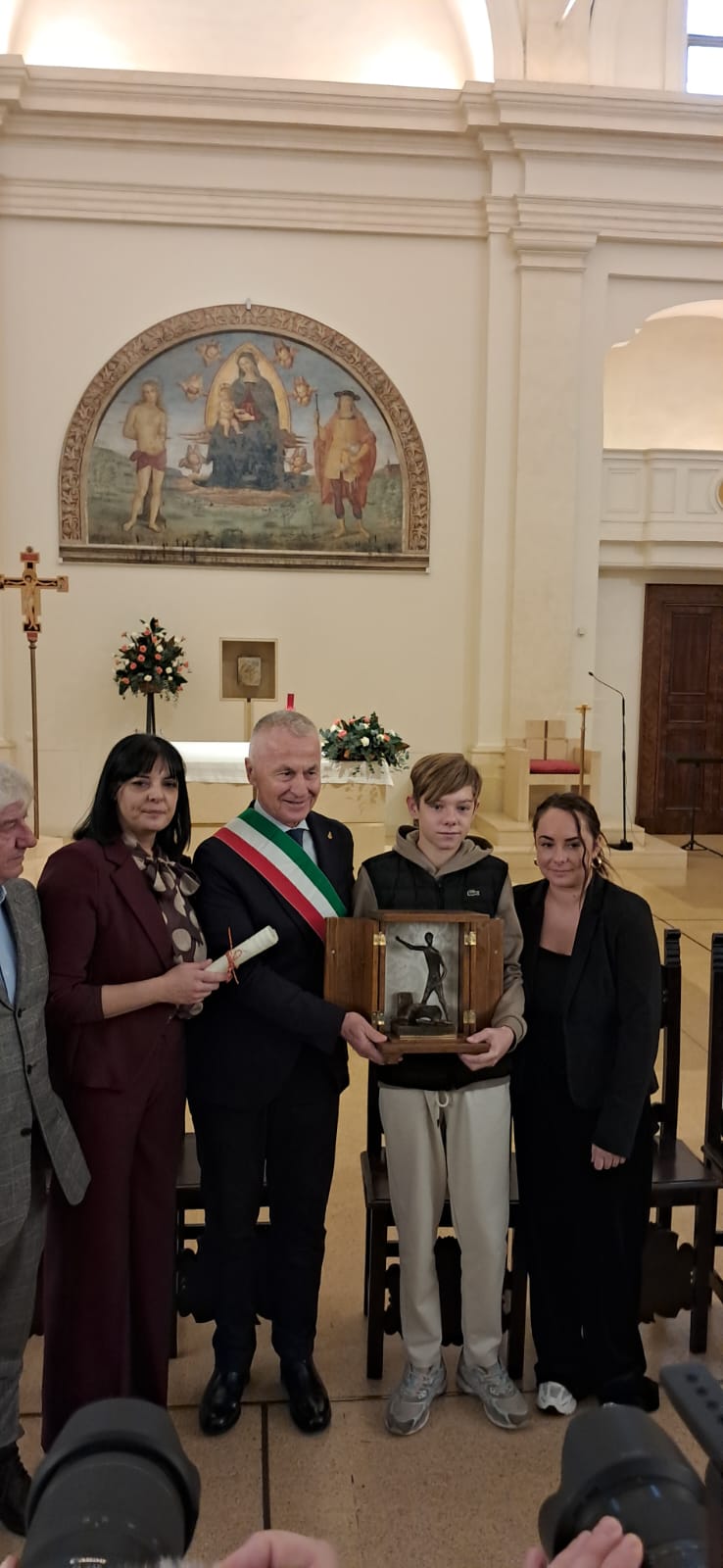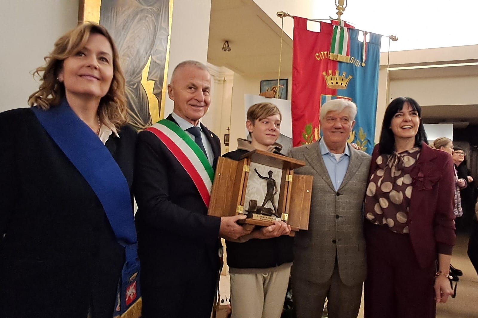 Sanato mattina, accompagnato dai familiari, dai membri della Pro loco di Petrignano, del comitato del Premio e di altre associazioni locali, Nathan era stato ricevuto in Comune, per una breve cerimonia alla quale erano presenti tra gli altri il sindaco Valter Stoppini (che a nome di tutta l’amministrazione e la cittadinanza ha ringraziato il giovane e il suo coraggio), la vicesindaca Veronica Cavallucci e la presidente del consiglio Annalisa Rossi. Il giovane ha firmato il libro della Città di Assisi e, come ricordo di questi giorni, una spilletta con lo stemma di Assisi e il libro in inglese dedicato alla città.