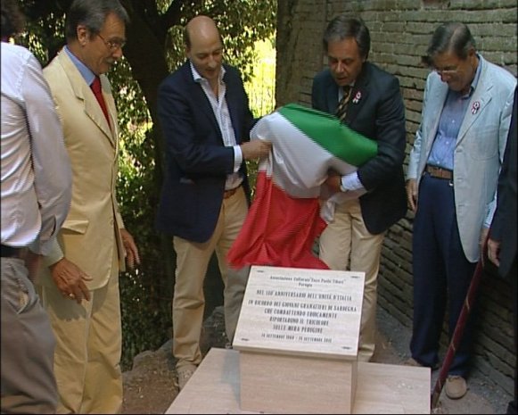Era il 14 settembre del 1860 quando le truppe del generale De Sonnaz entrarono da Porta Santa Margherita a Perugia ponendo termine alla lunga lotta di liberazione dalla dominazione pontificia. E proprio in occasione dei 150 anni dell’Unità d’Italia l’associazione culturale “Enzo Paolo Tiberi”, intitolata al noto avvocato e politico perugino scomparso prematuramente negli anni ’90, ha voluto ricordare l’impresa dei granatieri di Sardegna, mercoledì 14 settembre, con una cerimonia a Porta Santa Margherita. Un’occasione per scoprire una targa celebrativa in ricordo alla liberazione di Perugia dalle truppe del generale Schmid, repressore dell’insurrezione perugina del 20 giugno del 1859, ad opera dei granatieri insieme ai bersaglieri e agli artiglieri. Fissato il tricolore e cantato l’inno di Mameli, al momento celebrativo hanno preso parte Antonio Perelli, presidente dell’associazione culturale che si “ispira agli insegnamenti morali, risorgimentali e repubblicani”, Alberto Grohmann, docente in storia economica dell’Università degli studi di Perugia, Nilo Arcudi, vicesindaco di Perugia, Alvaro Verbena, sindaco di Deruta, e vari cittadini.