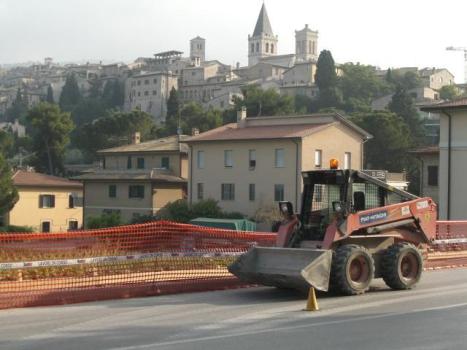Procedono a pieno ritmo, anche nel periodo estivo, i lavori nel territorio del Comune di Spello. Oltre al cantiere del Piano integrato di recupero che sta crescendo dalla zona di via Centrale Umbra fino all'Osteriaccia, sono in fase avanzata anche i cantieri dei lavori della nuova viabilità della zona artigianale e industriale, e di realizzazione delle infrastrutture della nuova area Pip (Piano per gli insediamenti produttivi) in località Navello.
