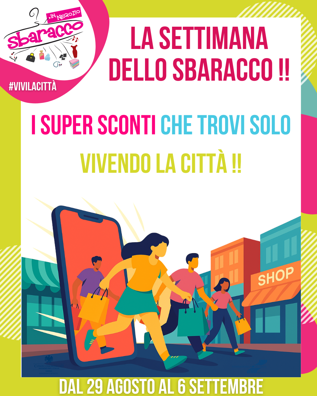 L’iniziativa nata nel 2019 è finalizzata a supportare il tessuto commerciale della città , con invito a vivere la propria città e scoprire le offerte commerciali. Grazie alle adesioni ricevute che anche quest’anno sono soddisfacenti, possiamo contare su una varietà di offerte che spaziano dall’abbigliamento agli articoli per la casa e non solo!. Gli esercizi commerciali aderenti metteranno in vendita una selezione di prodotti e proposte differenti e merceologie diverse: dall’abbigliamento alla pelletteria, calzature, prodotti per la persona e per la casa, biancheria intima, nonché articoli per l’ufficio e di profumeria, articoli da regalo ecc…