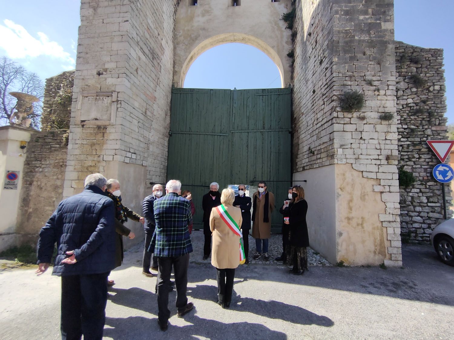 Terminati gli interventi di restauro della struttura in legno di Porta San Matteo. Questa mattina si è svolta la cerimonia di inaugurazione alla presenza del Commissario Prefettizio Tiziana Tombesi e del Presidente della Fondazione Carispo Sergio Zinni.