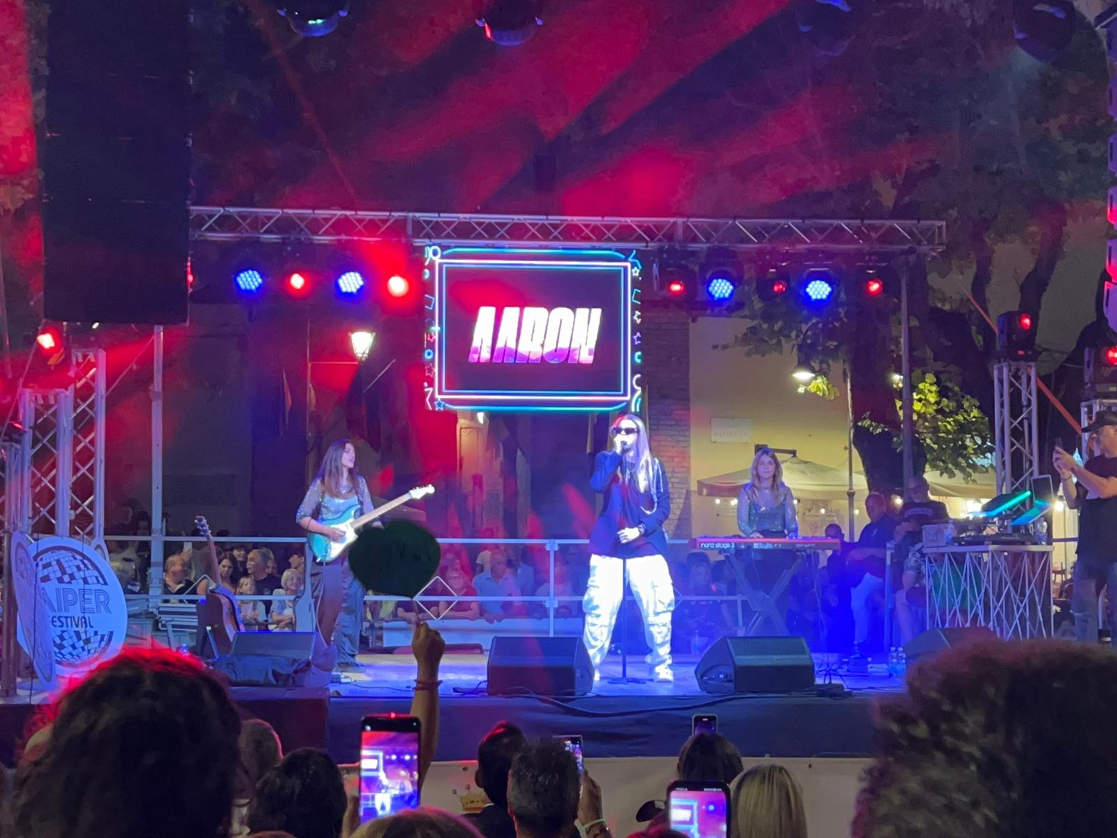 Ad introdurre Aaron le autorità cittadine. “Edoardo – ha detto il sindaco Virginio Caparvi – ha avuto il coraggio di mettersi in gioco, rimanendo con i piedi per terra e non nascondendo mai le sue origini. Ha saputo vivere i suoi diciotto anni con una maturità non comune per la sua età”. I ringraziamenti agli sponsor dell’evento sono arrivati dal presidente della Proloco, Gianfranco Fattorini. Saluto anche da Claudio Turchi, l’amministratore del gruppo Sem, che controlla la “Nocera Umbra Fonti Storiche”, in quanto l’evento era inserito all’interno della Festa delle acque. Il concerto di Aaron è stato anticipato e seguito dalla musica del Paiper Festival, con la serata “In love”.