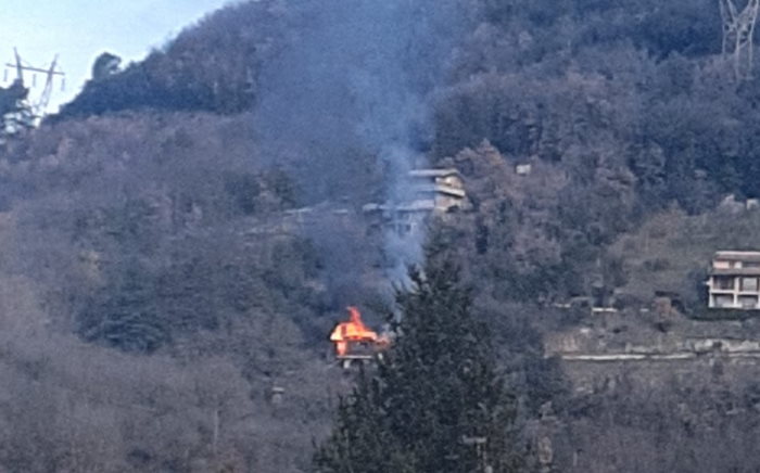 Abitazione in fiamme a Piediluco martedì mattina. L’incendio è visibile da lontano, visto che l’edificio è situato a mezza costa.