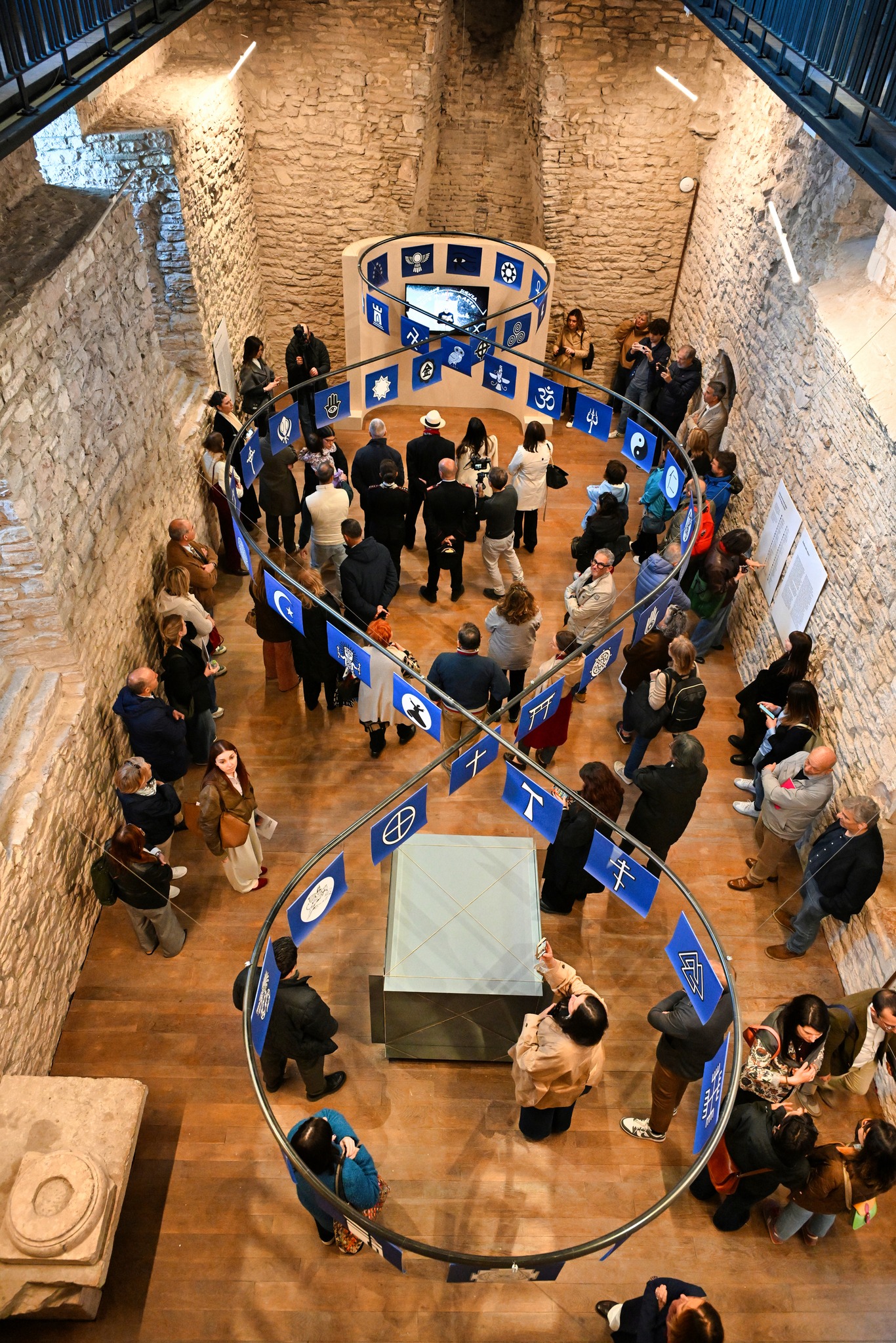 La mostra si configura così come un viaggio attraverso la storia delle religioni e delle filosofie, dove l’arte agisce come strumento di armonia e mediazione culturale, invitando il pubblico a riflettere sulla possibilità di un futuro condiviso. La mostra culmina nell’installazione video della santificazione artistica di Papa Francesco: un atto performativo che rende la proclamazione un’esperienza collettiva, restituendola alla dimensione relazionale dell’arte. Prima della mostra si è tenuta una tavola rotonda che oltre a Pistoletto, ha visto protagonisti tra gli altri padre Antonio Spadaro, sottosegretario del Dicastero Vaticano per la cultura e l’educazione (secondo cui “Papa Francesco è stato fratello in arte nell’intera vita trascorsa e anche dopo la vita”), fra Marco Moroni, custode del Sacro Convento di Assisi, monsignor Felice Accrocca, vescovo di Assisi, Nocera Umbra, Gualdo Tadino e di Foligno, oltre al sindaco di Assisi Valter Stoppini (“un’esposizione in grado di parlare a tutti, che conferma il ruolo di Assisi come città di pace e dialogo) e alla presidente della Regione Stefania Proietti. A seguire l’inaugurazione alla Rocca Maggiore, alla presenza dello stesso artista.