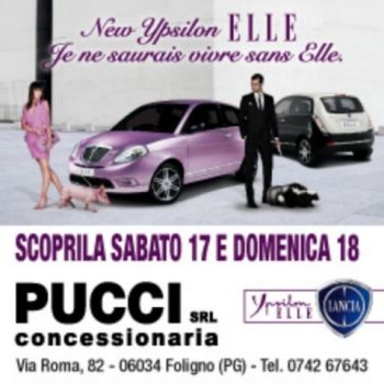 Se non avete intenzione di passare inosservati, questa vettura fa sicuramente al caso vostro! E' la New Ypsilon Elle, l'ultimissima versione della fortunata Lancia New Ypsilon che la concessionaria Pucci di Foligno vuole presentare al pubblico con un evento lungo un intero week end. Si parte venerdi 16 Aprile quando nel pomeriggio lo staff della concessionaria folignate, alla guida della glamour car, circolerà per le strade della città della Quintana facendo tappa, per l'happy hour, in due Caffè frequentatissimi: il San Magno e il Planet. Lì, sarà anche possibile prenotare un drive test e oltre a provare la macchina ottenere un buono di bellezza presso il centro estetico Panarea o Ligè Parrucchieri. L'occasione si ripeterà anche sabato 17 Aprile con le stesse modalità: aperitivo glamour e trattamenti estetici omaggio fino ad esaurimento scorte. Domenica, il clou dell'evento: presso la concessionaria Pucci di Viale Roma il porte aperte dedicato alla New Ypsilon nelle due versioni del momento. L'elegantissima bicolore black and white, che la campagna pubblicitaria ha associato ad un affascinante modello con simpatica puzzola al seguito e la seducente pink ideale per le ragazze che amano la passerella come la testimonial con maialino al guinzaglio! I dettagli esclusivi e i segni particolari delle due special edition sarà possibile conoscerli presso la concessionaria a partire dalle 18:00 dove vi attenderà anche un gustoso aperitivo in musica