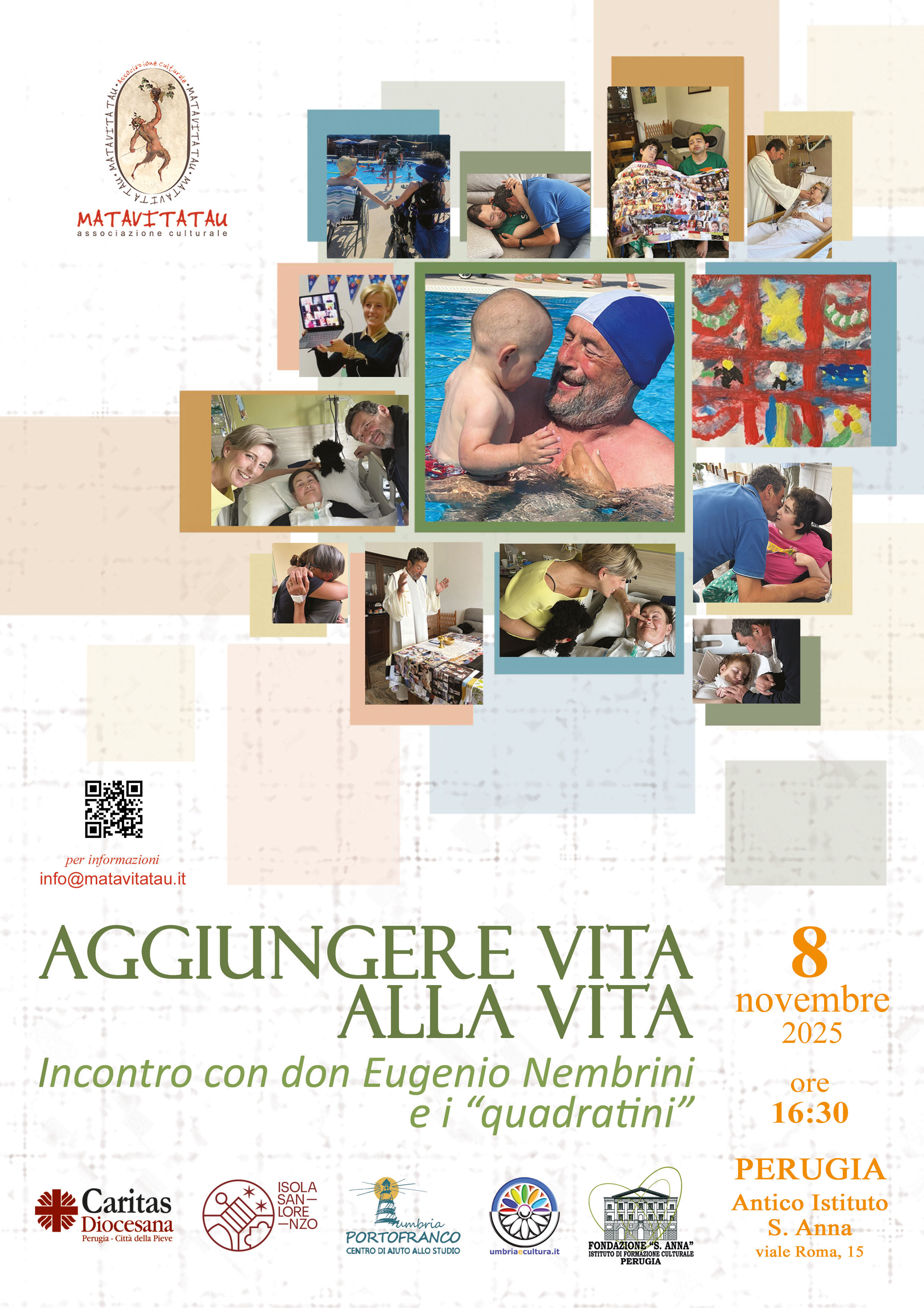 L’Associazione Matavitatau è lieta di invitare la cittadinanza all’incontro “Aggiungere vita alla vita”, un pomeriggio di dialogo e testimonianza con don Eugenio Nembrini e la comunità dei “Quadratini”, un’esperienza nata dal desiderio di condividere la fede e la vita anche nella malattia e nella fragilità.