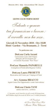 Il Lions club Terni Host ha organizzato un incontro dal titolo Talento e genere tra formazione e lavoro: il cervello non ha sesso moderato dalla socia Alessandra Robatto.