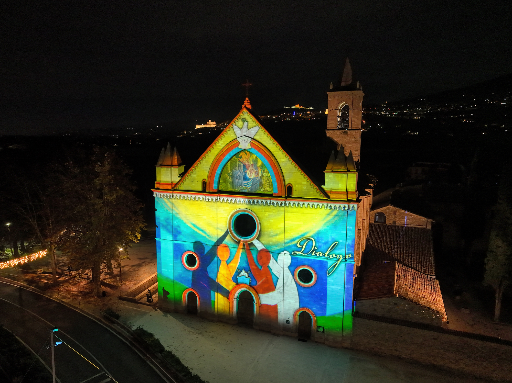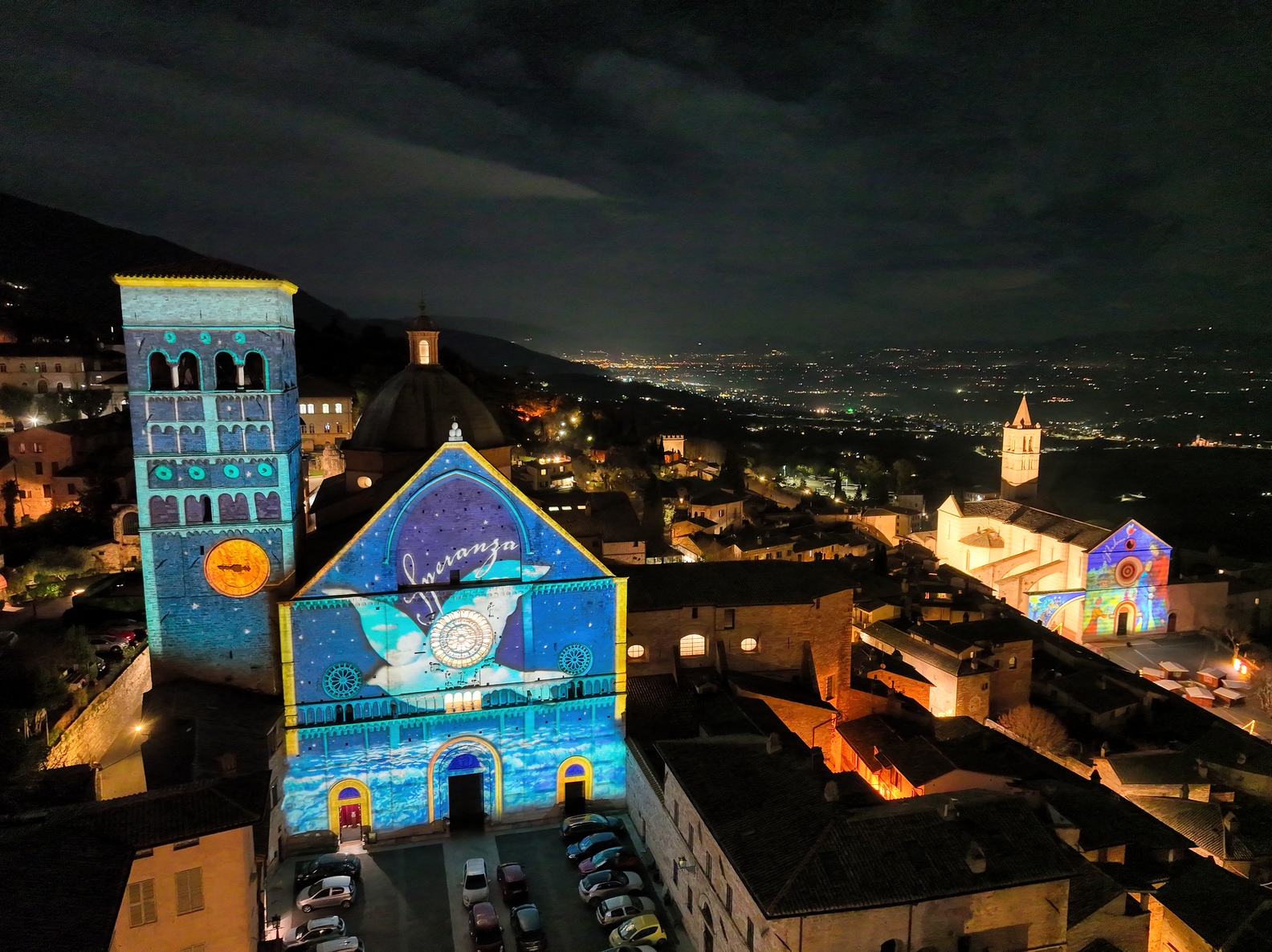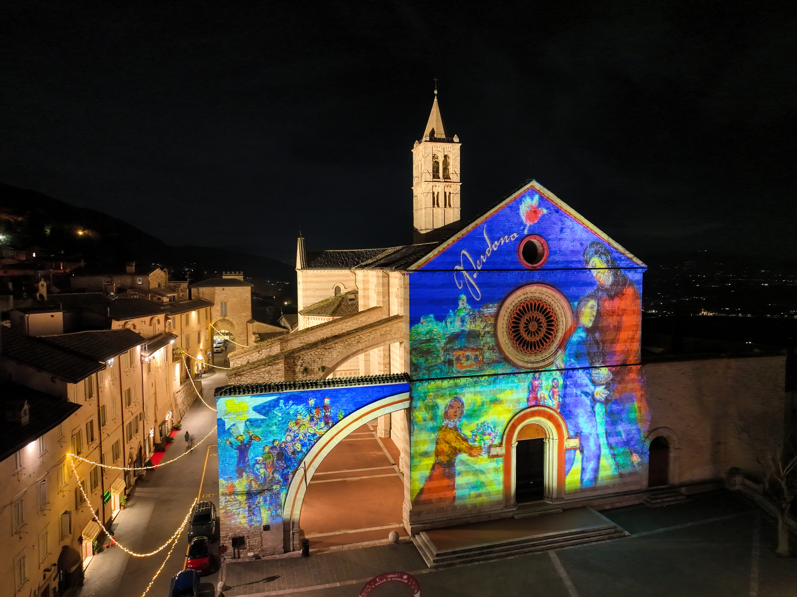 Si è acceso il 6 dicembre 2025 il Natale ad Assisi 2025, con le spettacolari proiezioni luminose su chiese e monumenti storici di Assisi dedicate al tema della pace nell’arte contemporanea, che danno il via al Natale più iconico dell’Umbria. Un progetto unico e originale, promosso dal Comune di Assisi, che trae ispirazione da opere di artisti come Banksy, Chagall, Magritte, Klimt, Köder, Picasso, con elementi di alcune delle loro creazioni più famose, reinterpretate e adattate alle architetture delle facciate. “Qui è nata la luce del Natale – ha detto Stoppini dal palco di Betlemme, accanto al primo cittadino Maher Nicola Canawati e ad autorità locali – che da secoli parla al cuore dell’umanità. I tempi sono difficili e il futuro è carico di incertezze, ma proprio da qui arriva un messaggio di pace e speranza che unisce e supera ogni confine. Assisi e Betlemme credono nella pace e sono unite per costruirla. Basta guerra, il mondo ha bisogno di tregua, fraternità, dialogo. La luce del Natale e dell’albero acceso insieme sia un ponte di pace e speranza per tutti i popoli della terra”.