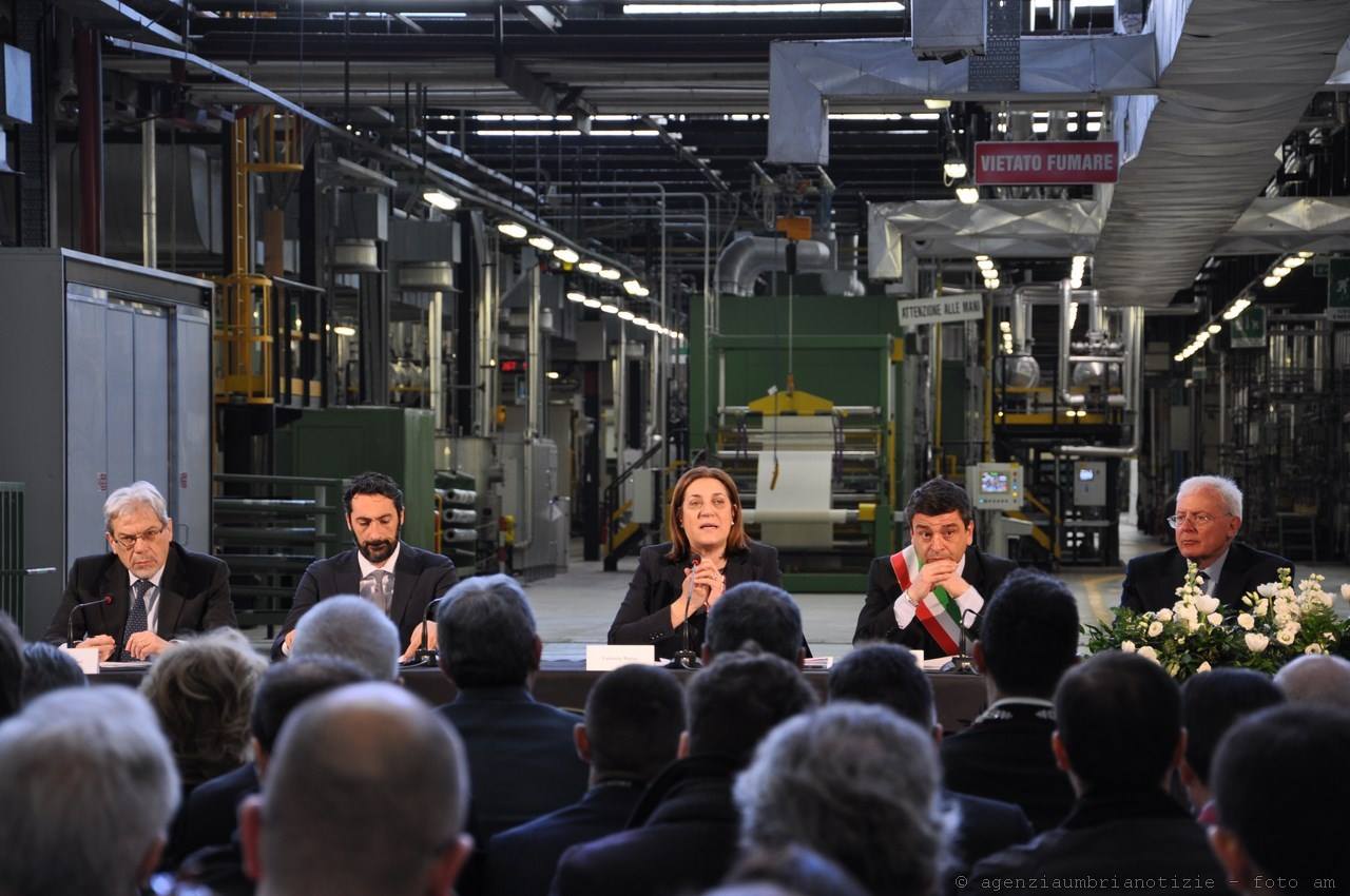 “Questa azienda – ha proseguito Marini – non è una sopravvissuta del passato, bensì è una impresa che con coraggio e lungimiranza ha voluto attraversare controcorrente il ‘mare’ della crisi economica, investendo soprattutto in ricerca ed innovazione. Elementi che rappresentano il valore aggiunto ed il motivo del successo industriale di Alcantara che oggi presenta un piano straordinario di sviluppo e crescita. Qui c’è un pezzo importante della storia industriale della nostra regione, del territorio di Narni e Terni, ma anche del Paese, della tradizione industriale manifatturiera, del ‘Made in Italy’. Dobbiamo essere riconoscenti al management, alle maestranze ed alla proprietà per aver saputo guardare al futuro, aver saputo guardare alla globalizzazione come opportunità. Inoltre, Alcantara rappresenta anche un modello positivo di equilibrio tra attività produttiva e compatibilità ambientale, specie in un contesto paesaggistico come quello in cui lo stabilimento è ubicato”.