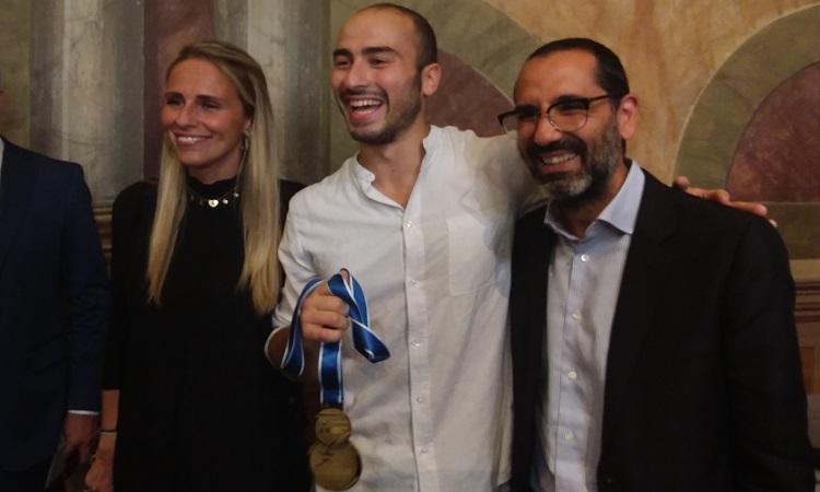 La cerimonia si è conclusa con la consegna di una targa da parte dell’Amministrazione comunale al pluricampione e al suo maestro.