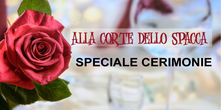 Oggi sia il giardino estivo che le sale interne posso essere riservati per cerimonie quali battesimi, cresime, comunioni, compleanni e feste di laurea. Per l’occasione la cucina della Corte dello Spacca propone menu che partono da 25 euro a persona e includono: aperitivo di benvenuto, due primi a scelta, tre secondi a scelta, due contorni, dolce, caffè, acque minerali e vini.