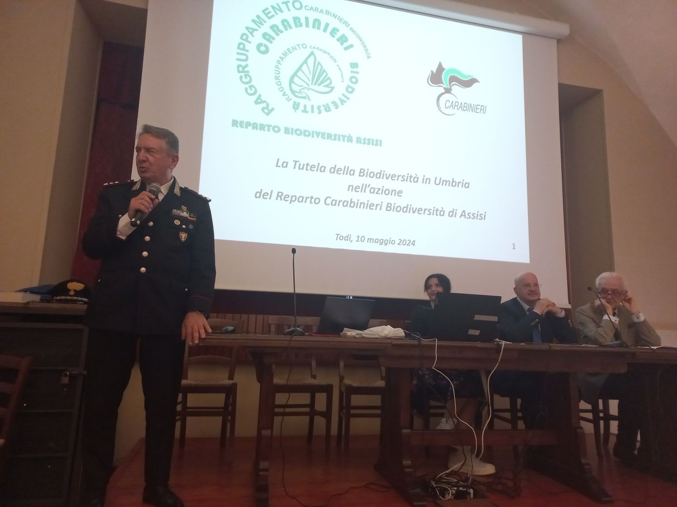 Oltre ai Carabinieri di Todi, è intervenuto all’incontro il Comandante del Raggruppamento Carabinieri per la tutela della biodiversità, Gen. D. Antonio Danilo Mostacchi, che ha illustrato ai ragazzi le problematiche inerenti la tutela del patrimonio forestale e naturalistico.