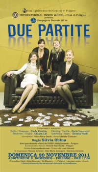 Oggi pomeriggio, alle ore 17, presso l’Auditorium San Domenico, International Inner Wheel – Club di Foligno, con il patrocinio del Comune di Foligno, presenta “Due partite” della Compagnia Teatrale OZ. Lo spettacolo, diretto da Silvia Obinu, vede protagoniste Paola Cambio (Sofia/Rossana), Carla Lorenzini (Claudia/Cecilia), Chiara Lio (Beatrice/Giulia) e Claudia Paoli (Gabriella/Sara). Direttore di scena è Catia Cecoli, al suono c’è Davide Giannini e alla fotografia Luca Petrucci.