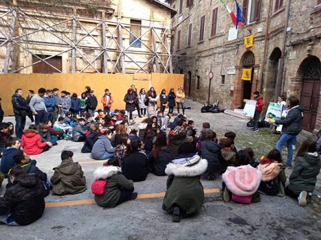 A Bevagna le classi si sono incontrate presso la sala di Santa Maria Laurentia e poi, divise in gruppi e armati di pettorine e cappellini Legambiente, hanno iniziato la raccolta dei rifiuti in diverse zone della città: zona dell’Accolta, Largo Gramsci, Ponte sul Clitunno, Campo dei Frati e la strada che costeggia le Mura. Muniti di quattro sacchi (carta, plastica, vetro e indifferenziato) i ragazzi hanno prima raccolto i rifiuti per poi trasportarli davanti all’edificio scolastico in piazza Filippo Neri dove a fine mattinata hanno proceduto alla loro pesatura accompagnati da una riflessione con gli esperti.