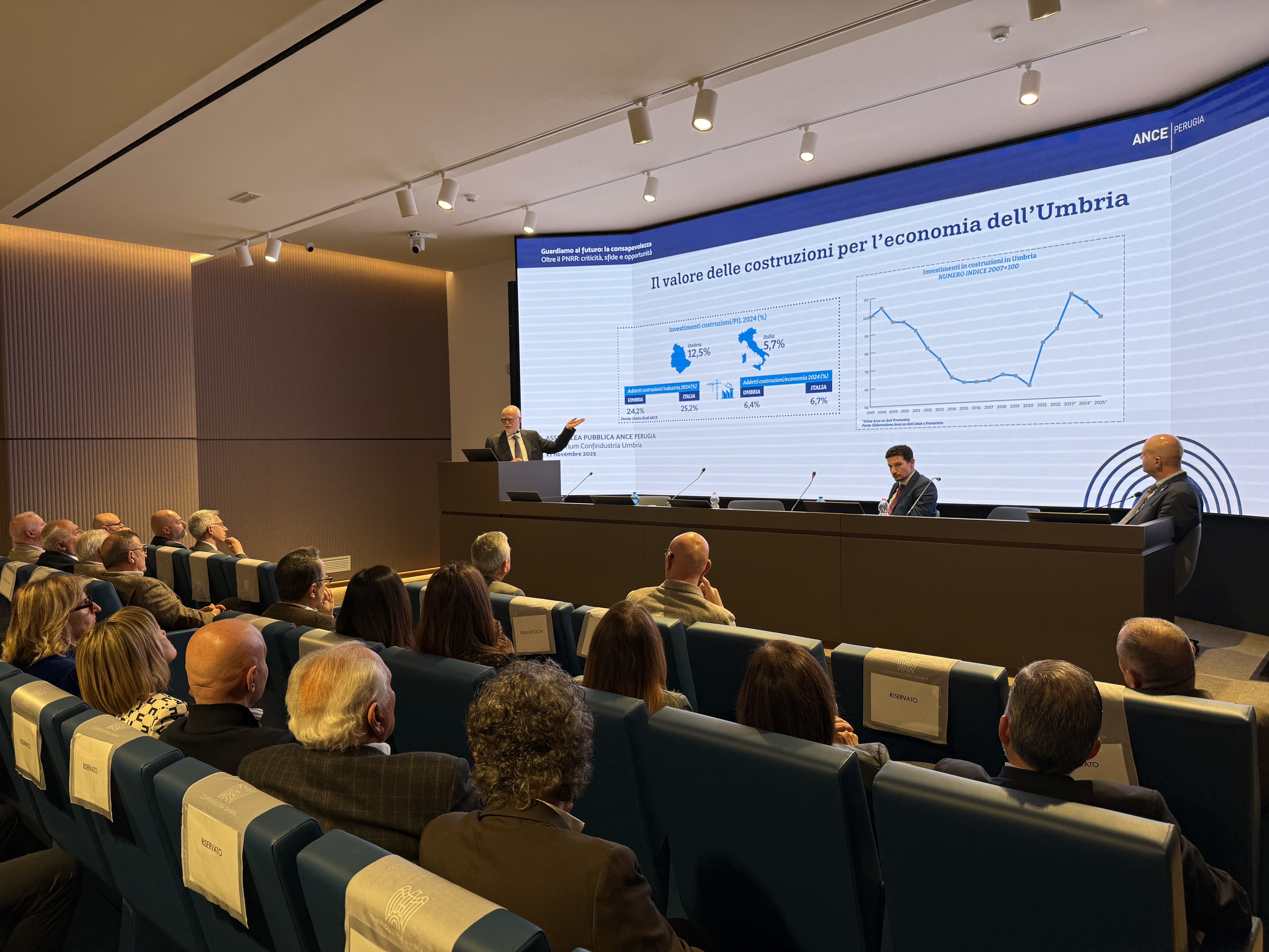 “Dal report di quest’anno – ha sottolineato il presidente di ANCE Perugia, Giacomo Calzoni – emerge un’Umbria dall’equilibrio instabile, esposta a rischi sempre più evidenti. Allo stesso tempo appare chiaro il contributo fondamentale che ha fornito e può continuare a fornire l’industria delle costruzioni. Quel che serve è l’individuazione di una strategia condivisa, che metta al centro una forte collaborazione tra pubblico e privato, mettendo maggiormente a sistema le politiche attuali. Da parte di ANCE vi è la più ampia disponibilità a svolgere un ruolo di interlocutore tecnico e operativo, mettendo a disposizione dati, analisi e strumenti di monitoraggio per trovare insieme le soluzioni più rispondenti a garantire sviluppo economico e un maggiore benessere ai cittadini della nostra regione”.