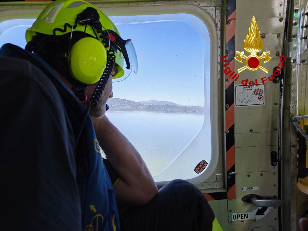 Il dispositivo vvf operativo sul posto impiega il nucleo Sommozzatori di Ancona per le ricognizioni subacquee; le squadre dei vigili del fuoco della centrale con moto d’acqua e un’imbarcazione; il nucleo SAPR (droni) per il pattugliamento dell’area dall’alto. Sul posto anche l’elicottero – da Cecina – dei Vigili del Fuoco, che effettua sorvoli della zona per supportare le operazioni, l’Unità di Comando Locale (UCL) e la Sezione Navale con moto d’acqua del Comando di Terni, oltre ai Carabinieri della Stazione di Castiglione del Lago.