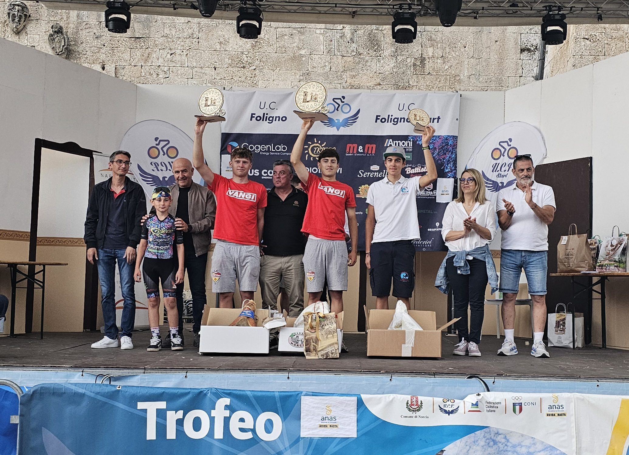 Un vincitore di livello quindi per una corsa che ha tutte le carte in regola per affermarsi tra le classiche più ambite del calendario nazionale Juniores. Merito in primis del sempre puntuale lavoro organizzativo dell’Unione Ciclistica Foligno, che ha saputo scommettere su una manifestazione in grado di coniugare come poche altre il dato tecnico e agonistico con quello paesaggistico. Anche in questa occasione la società guidata a Moreno Petrini ha dimostrato tutta la sua sensibilità e capacità nel costruire sinergie con un territorio magnifico e dalle grandi potenzialità per la pratica ciclistica come quello di Norcia, che ha saputo raccogliere, anche grazie alla concomitanza con il ponte di Ferragosto, una notevole fetta di pubblico tra appassionati e curiosi. Sinergie testimoniate anche dalla nutrita partecipazione dell’Amministrazione Comunale, con il sindaco Giuliano Boccanera, l’assessore allo sport Sabrina Palazzeschi, l’assessore al turismo Marianna Stella, l’assessore ai lavori pubblici Gianni Coccia e il consigliere Andrea Russo che hanno presenziato con entusiasmo sia alla cerimonia di premiazioni, impreziosita da un ricco assortimenti di prodotti locali, che alla sfilata di presentazione dei team. Fondamentale quando si parla di territorio anche la collaborazione logistica con il Ristorante Nemo, quartier generale della corsa sin dalle operazioni preliminari del mattino, senza dimenticarsi del prezioso contributo della Polizia Locale e del comando dei Carabinieri per la messa in sicurezza del tracciato. A livello istituzionale non sono voluti mancare inoltre il presidente del CR Umbria della FCI Roberto Cocchieri e il vicepresidente vicario Lucio Saccarelli, che hanno dato segno della vicinanza degli organi federali regionali nei confronti di una corsa dalle prospettive più che rosee per il prossimo futuro.