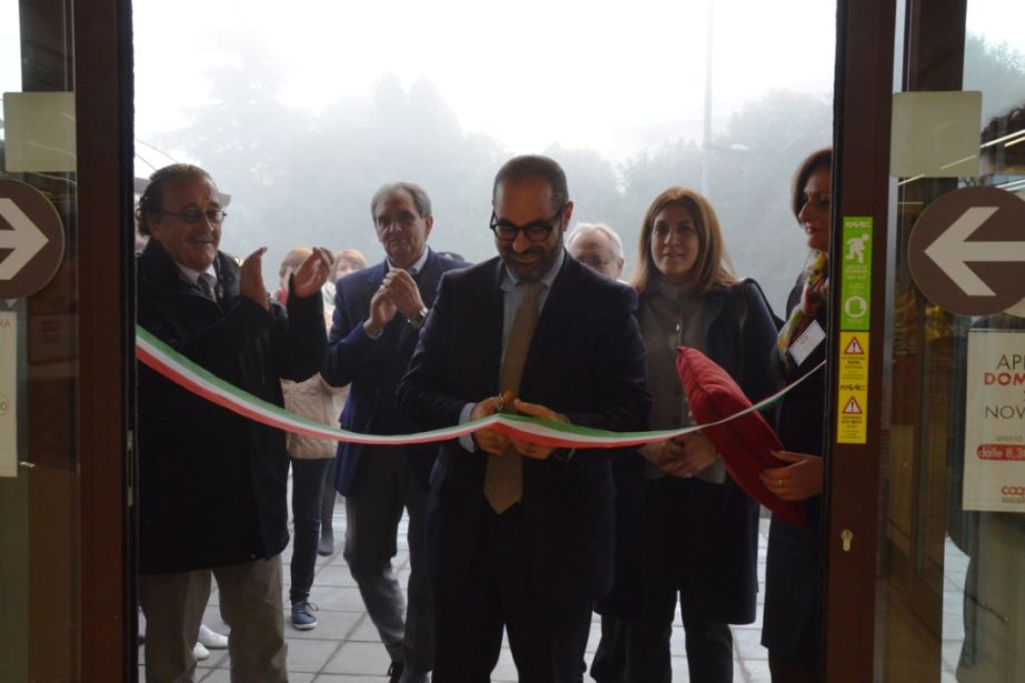 È seguita la benedizione del nuovo punto vendita da parte del Parroco Don Marcello Cruciani e il taglio del nastro da parte del Sindaco.
