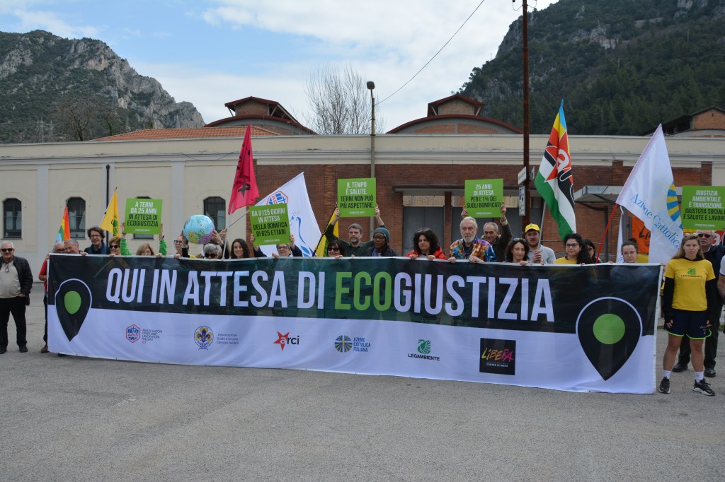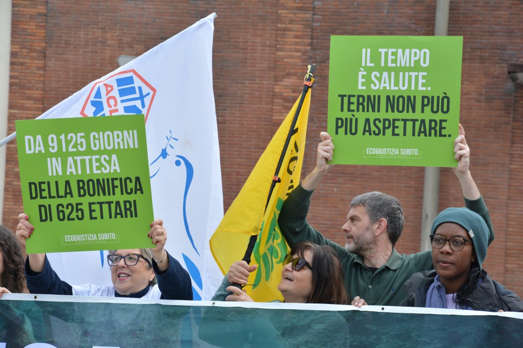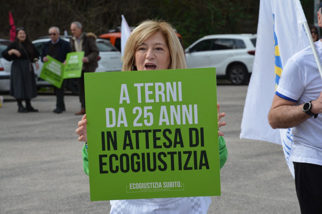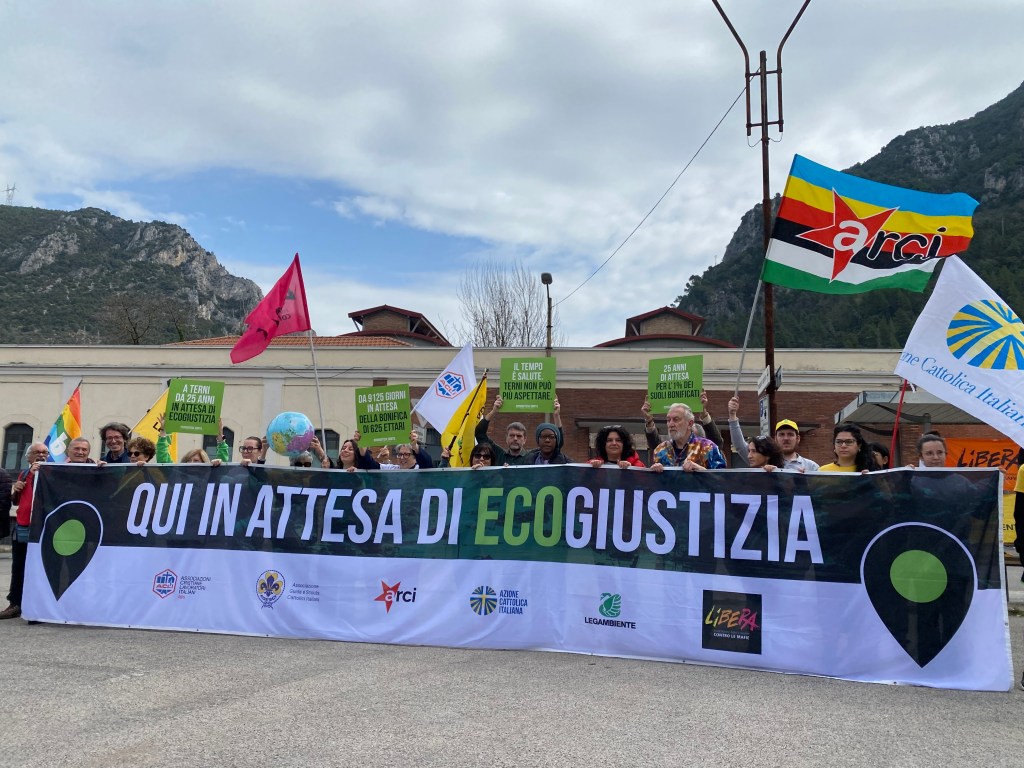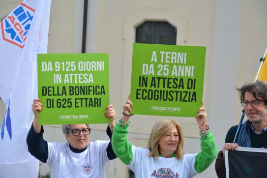Da 25 anni gli abitanti di Papigno aspettano la bonifica del campetto da calcio considerato inagibile dal 2001 perché rientra nell’area SIN. Ed è un’attesa che non sembra avere un epilogo nell’immediato. Così come è in attesa l’intera area SIN Terni-Papigno di 625 ettari, che includono l’acciaieria, gli ex stabilimenti elettrochimici di Papigno e le aree di discarica, dove negli anni sono state rilasciate scorie, polveri industriali, amianto, metalli pesanti, idrocarburi e residui di calciocianamide. Nonostante nel 2001 l’area sia stata inserita tra i Siti di Interesse Nazionale, finora sono state investite poche risorse per mettere in sicurezza il perimetro e monitorare l’andamento degli inquinanti, ma per il risanamento c’è ancora molta strada da fare. E’ per questo che mercoledì 11 marzo sotto la campagna “Ecogiustizia subito” è stato organizzato un flashmob nel parcheggio antistante il vecchio campo da calcio del paese da ACLI, AGESCI, ARCI, Azione Cattolica Italiana, Legambiente, Libera, Associazione “pensare il domani”, “Pro Natura” Terni, SOS Verde Pubblico Terni, Associazione “il castello di Papigno”, “Mi rifiuto”. Il Presidente Ciafani di Legambiente: “Finora è stato bonificato solo l’1% dei terreni in quest’area. Se questo sito inquinato fosse stato in Usa o Germania, in 25 anni sarebbe stato bonificato, inquinato di nuovo e bonificato una seconda volta. Qui invece siamo ancora nelle fasi iniziali