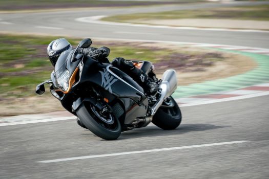 Le eccezionali prestazioni assolute della Hayabusa possono essere sfruttate con facilità grazie al perfetto bilanciamento dei pesi tra i due assi e alla messa punto ottimale della ciclistica. Il telaio e il forcellone in alluminio sono abbinati a sospensioni KYB completamente regolabili, mentre le pinze freno anteriori Brembo Stylema® agiscono su dischi da 320 mm. I nuovi cerchi a sette razze montano pneumatici Battlax Hypersport S22 sviluppati appositamente per la Hayabusa.