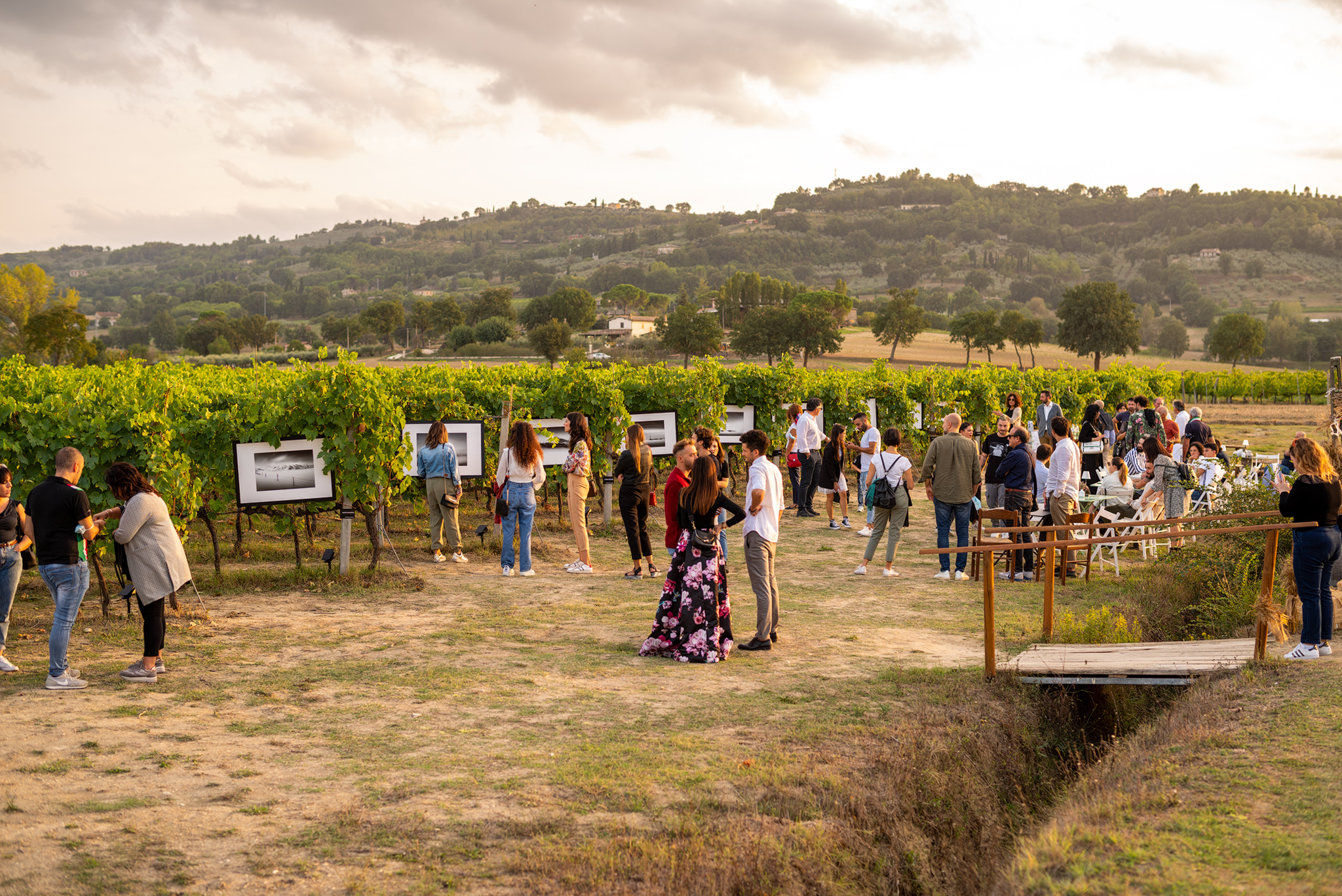 La mostra consisteva in nove stampe fine art di scatti fotografici eseguiti con lunghe esposizioni per rendere “sospesi” i soggetti delle foto. Da qui il titolo della mostra. Il tutto avvolto da quell’alone di mistero e fascino che caratterizzano l’opera di Calvani. Le immagini erano poi posizionate nei filari della vigna di un’azienda agricola bevanate. Un cocktail di alto livello e di sicura riuscita.