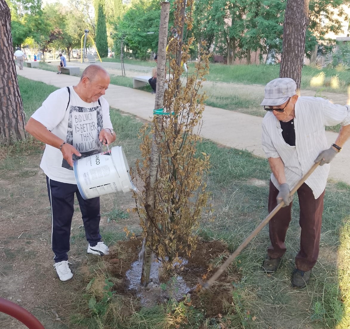 Ora Giacomo ed Ennio, impietositi dallo stato delle piante, hanno allargato il loro impegno lungo il percorso ciclopedonale da via Grieco a Ponteland, davanti alla chiesa, per curare i colletti degli alberelli messi a dimora da poco e necessari di manutenzione accurata e soprattutto, con queste temperature, di acqua. In attesa di un provvidenziale e professionale intervento comunale Giacomo ed Ennio hanno iniziato a lavorare dando un illuminato esempio di amore e attenzione per la salute di erba e piante e del territorio pubblico in genere non tralasciando la raccolta di cartacce, lattine e bottiglie di carta e di plastica.