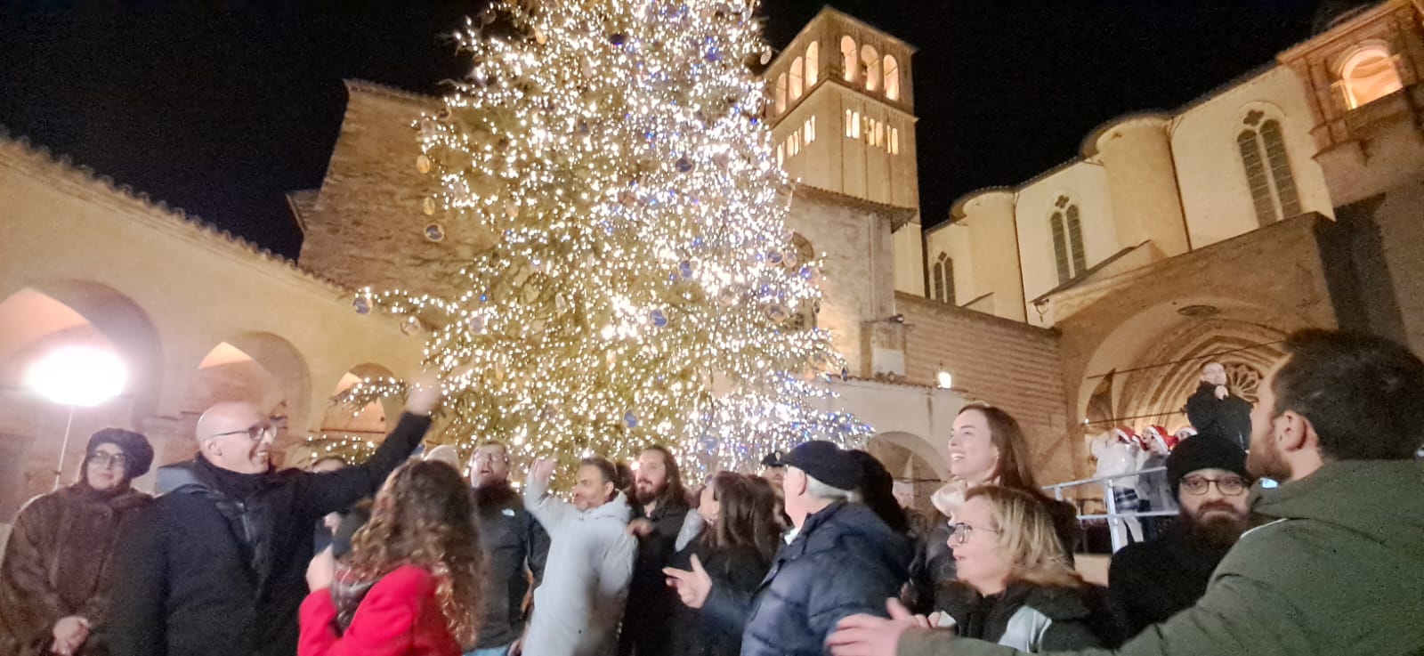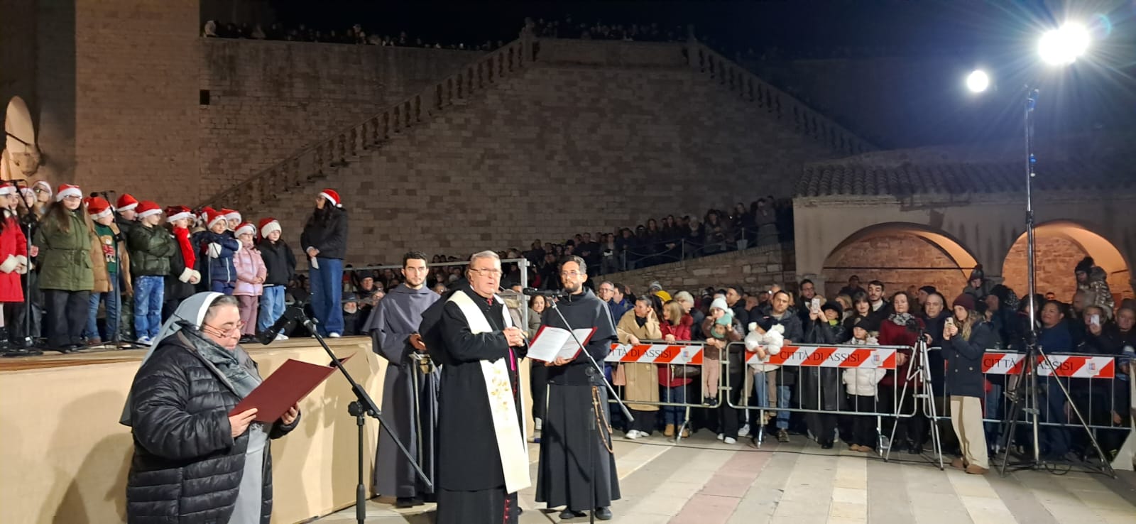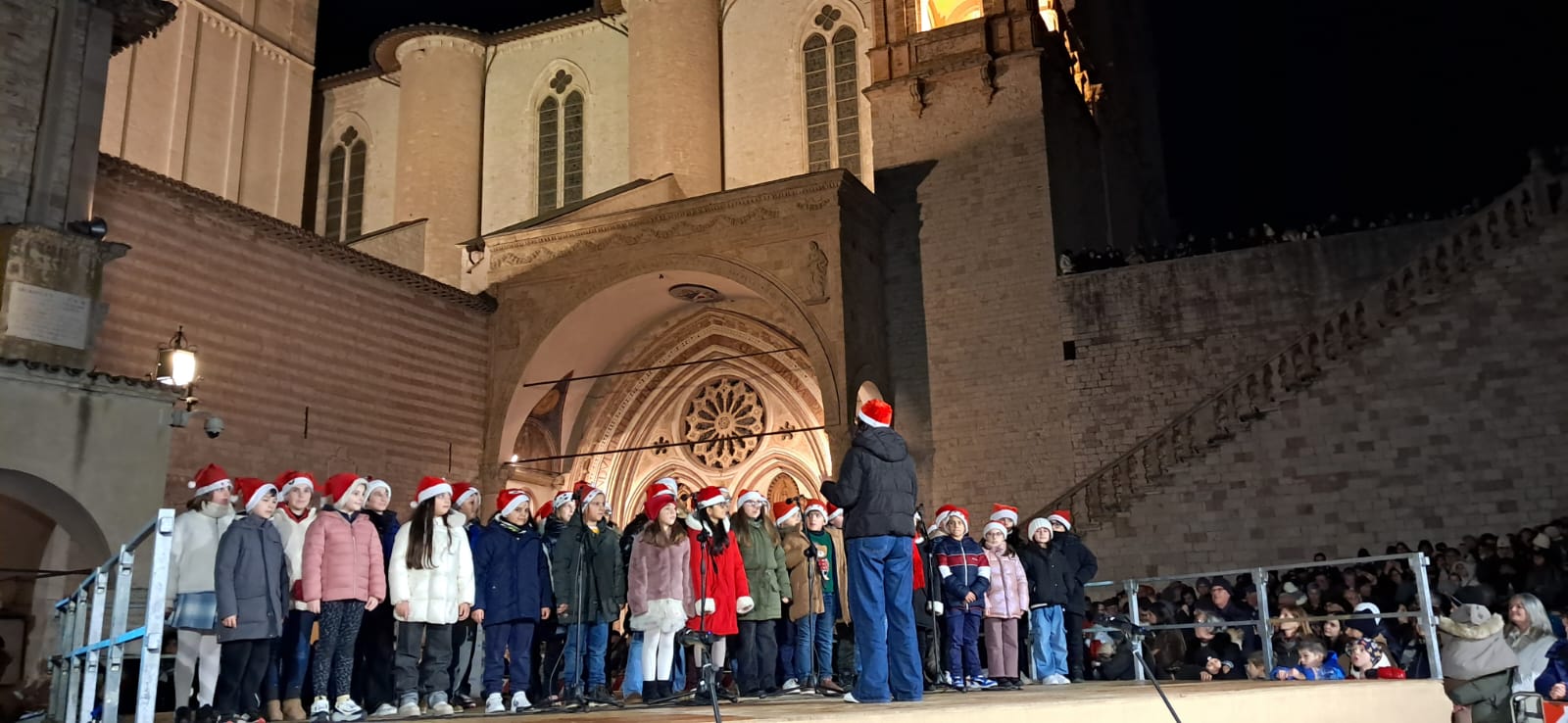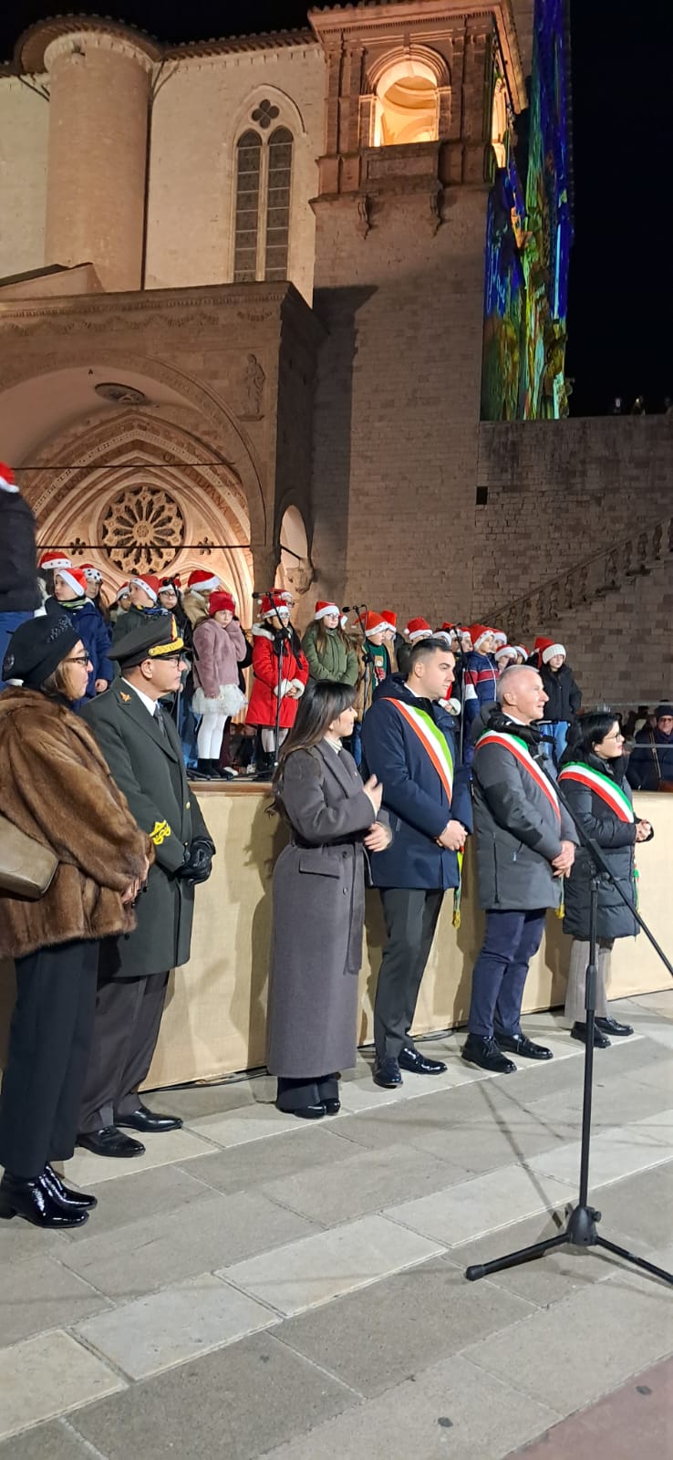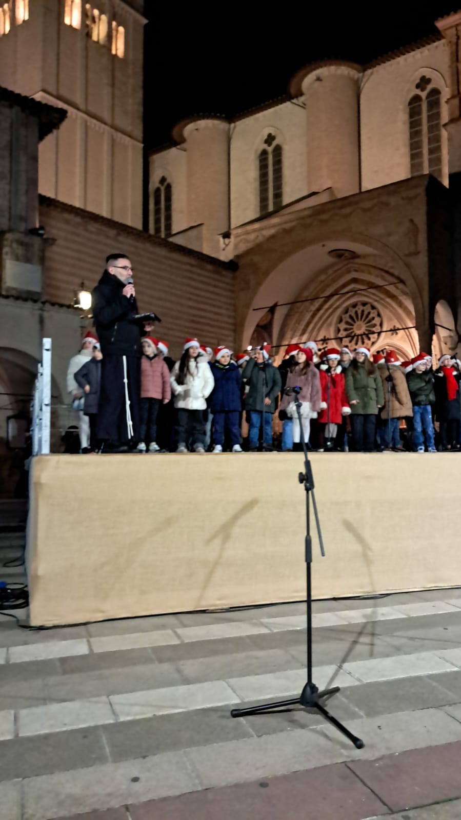 Alle 18.10 è seguita, in piazza inferiore, l’accensione dell’albero di Natale e della videoproiezione sulla facciata della chiesa superiore della Basilica, insieme alla benedizione e all’inaugurazione del presepe. Questo momento è stato animato dal coro delle classi 4 e 5 della Scuola Primaria Sant’Antonio – Istituto Comprensivo “Assisi 1”.