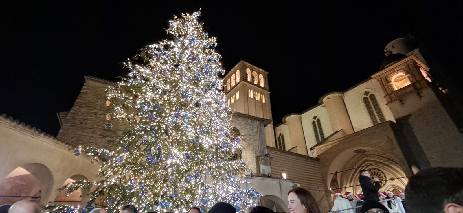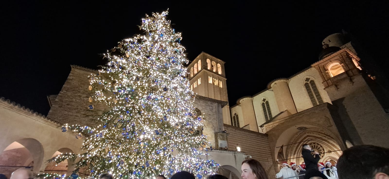 Albero e presepe sono arrivati dall’Abruzzo e si tratta nello specifico un cedro di circa 13 metri e dieci figure del Presepe Monumentale di Castelli, opera in ceramica nata negli anni Sessanta all’Istituto d’Arte “Grue”, tutti collocati nella piazza inferiore di San Francesco. Accesa anche la videoproiezione sulla facciata della chiesa superiore della Basilica raffigura il “Presepe di Greccio” di Sieger Köder, realizzata da EnelX grazie al sostegno del Comune di Assisi e della Regione Umbria e fa parte del videomapping che abbellirà anche tutta la città, frutto del lavoro congiunto di storici dell’arte e lighting designer, supportati da strumenti digitali.