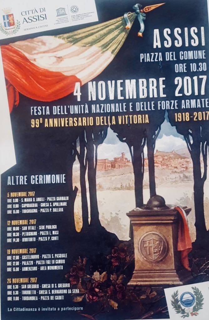Tutta la Cittadinanza è invitata a partecipare alla Festa dell’Unità Nazionale e delle Forze Armate dopodomani 4 novembre in piazza del Comune alle ore 10:30. Il 99º anniversario della Vittoria (1918-2017) sarà ulteriormente celebrato in diverse occasioni sui territori.