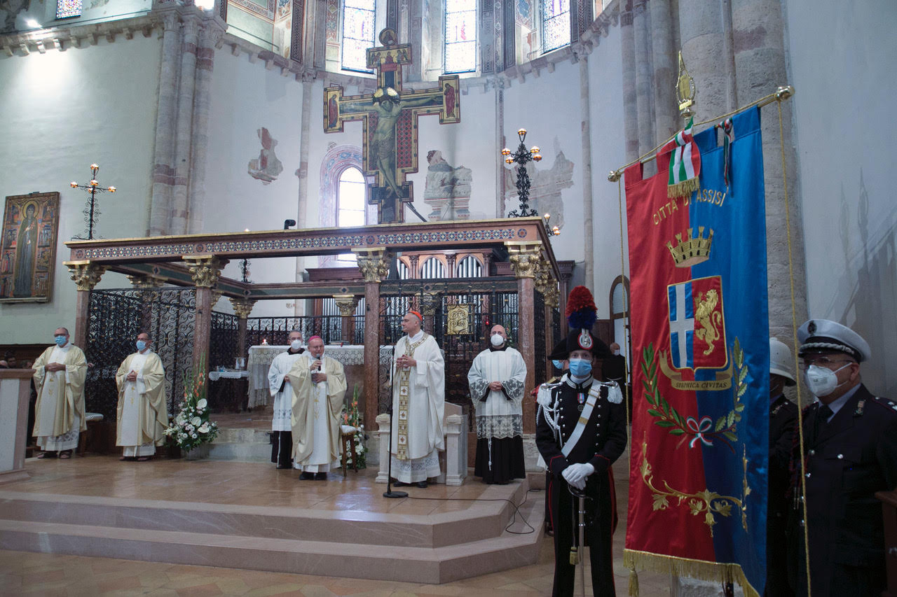 “Chiara ha vissuto un crocevia della storia simile al nostro dove è stata posta innanzi a una scelta ultimativa: tuffarsi nell’Essere eterno o rimanere ancorati al niente che passa”. Lo ha detto cardinale Mauro Gambetti, vicario generale di Sua Santità per la Città del Vaticano e arciprete della Basilica di San Pietro, mercoledì 11 agosto durante l’omelia in occasione della celebrazione eucaristica per la solennità di Santa Chiara 2021 da lui presieduta e concelebrata dal vescovo diocesano monsignor Domenico Sorrentino. Nella Basilica di Assisi, dedicata alla Santa, erano presenti le autorità civili e militari, il clero diocesano e i tanti fedeli venuti per rendere omaggio alla santa, patrona della televisione e delle telecomunicazioni.