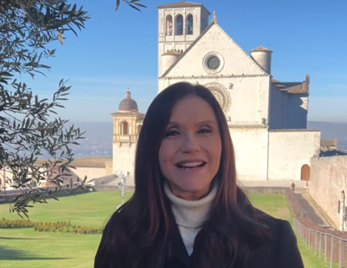 “Cari amici – il video che l’attrice ha concesso a Visit Assisi, portale turistico della città – ci tengo veramente a ringraziare il Comune di Assisi e questa città meravigliosa, grazie per l’accoglienza. Noi siamo qui per girare una trasmissione dedicata a San Francesco, Santa Chiara e al Beato Carlo Acutis. È veramente per me un onore e una gioia trovarmi in questo luogo, un’emozione incredibile. Questo posto che veramente sprigiona pace, felicità e soprattutto amore, amore quello vero con la A maiuscola“.
