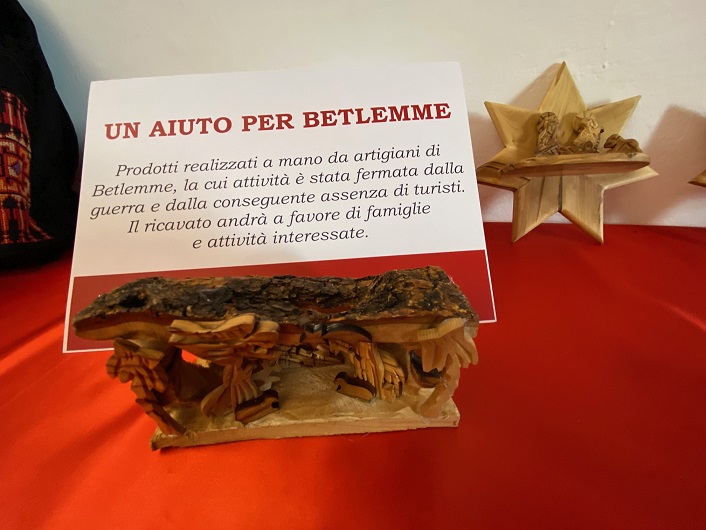 Per dare un segno concreto di vicinanza l’amministrazione comunale ha disposto in piazza del Comune un punto dove è possibile ammirare presepi di Betlemme realizzati in quella terra martoriata dalla guerra. Il sindaco, a nome dell’amministrazione e della città tutta, si associa nell’invito dei frati a sostenere le persone che necessitano di un aiuto quotidiano per assicurarsi medicine, cibo o altri tipi di sostegno, anche per portare la speranza di un futuro che permetta loro di continuare a vivere in Terrasanta.