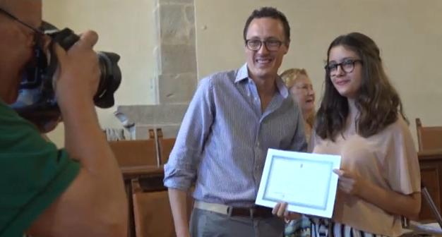 La cerimonia di consegna si è svolta nella sala del consiglio comunale dove, insieme ai rappresentanti degli istituti e delle famiglie, erano presenti per la scuola media Alighieri-Pascoli di Città di Castello Anna Clara Castellani, Daniele Ferri, Davide Marconi, Vittoria Mearelli, Paola Sarteanesi, Luca Volpi, Francesca Beccafichi, Cristina Bernini, Youma De Rosa, Gregorio Masi, Niccolò Masi, Arianna Gustinicchi, Chiara Rosati, Elisa Rosati, Jada Leandri, Alice Chiarioni, Elisa Mannarelli Stella Cardellini, Agnese Gai, Matilde Savelli, Matilde Cozzari, Arianna Fontanelli, Valentina Grilli, Rachele Bartolini, Diletta Liberati, Livia Polenzani, Pietro Bianconi, Giulia Lucaccioni, Filippo Pecorelli, Alessandro Pieracci, Francesco Rosi; per la scuola media Leonardo da Vinci di San Giustino Agnese Giorni, Arianna Giornelli; per la scuola media di San Francesco di Sales Valentina Bastianoni, Anna Maria Polchi, Beatrice Primavera; per l’istituto comprensivo Alberto Burri di Trestina Margherita Bacchi, Lucrezia Domenichini, Letizia Giombini, Gabriele Giovanni Guerri, Elisa Pecorari; passando alle scuole secondarie di secondo grado: Letizia Piccioloni del liceo internazionale San Francesco di Sales; per il polo tecnico Franchetti-Salviani Asia Brunelli, Alessia Falleri, Simone Gabrielli, Alice Fortuni, Khaula Abbid, Sara Peli, Lorenzo Lodovini, Michela Poratelli, Vittoria Ottobrini, Angela Ranieri; per il liceo Plinio il Giovane Laura Carbini, David Meacci, Giulio Rosadi, Martina Tornesi, Francesco Tavernelli, Davide Pierini, Virginia Stinchi, Marta Baccarini, Agnese Rosadoni; per l’istituto di istruzione superiore Patrizi-Baldelli-Cavallotti Alessio Vinciarelli, Cristina Mancini Alunno, Arianna Gaggioli; per il Liceo Città di Piero di Sansepolcro Ilaria Innocenti, Alice Pierini, Valeria Sgoluppi; per il Campus Leonardo da Vinci di Umbertide Caterina Minni e Giulia Adriani.