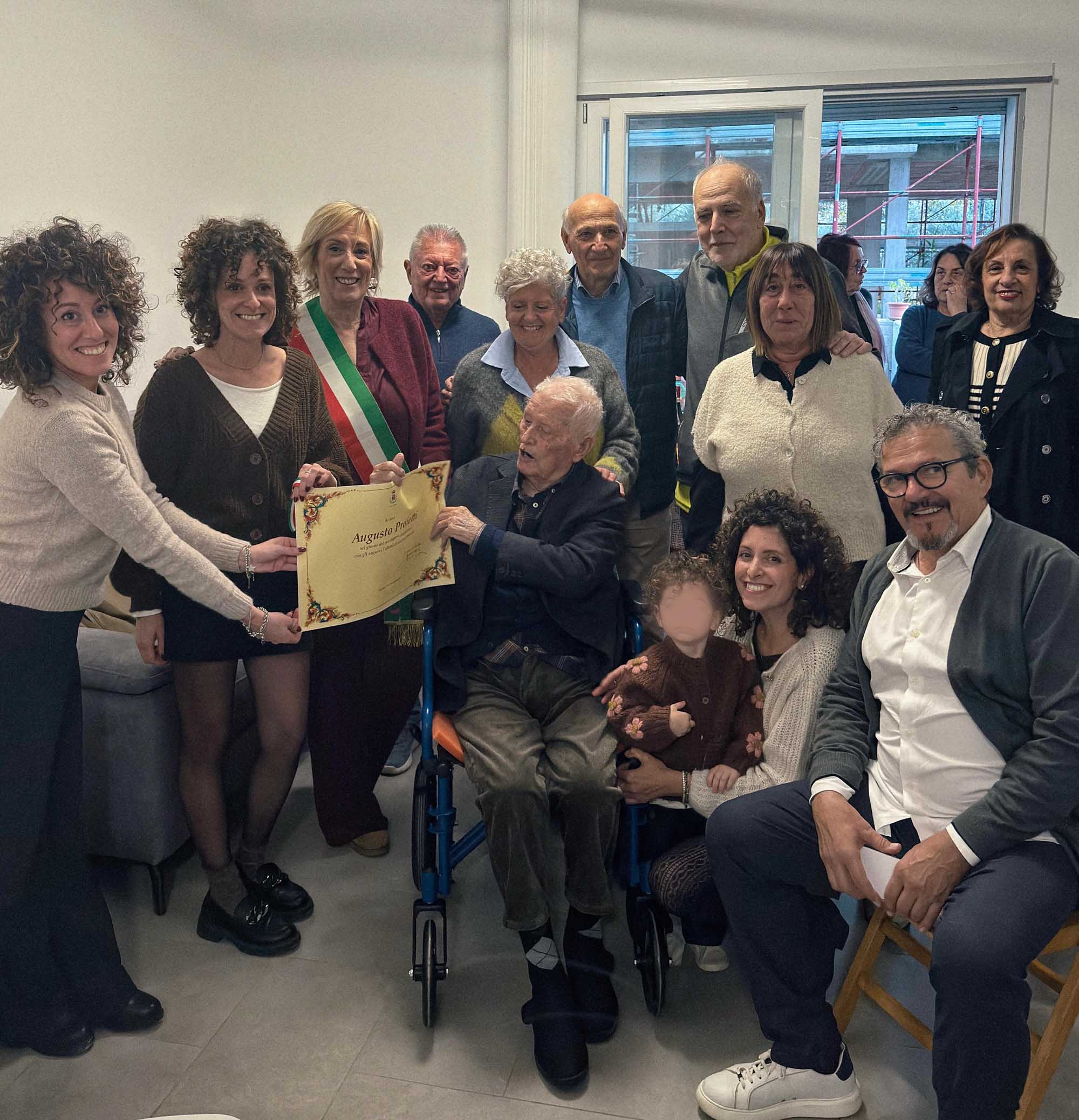 Grande festa a Spoleto per i 100 anni di Augusto Proietti, compiuti domenica scorsa circondato dall’affetto dei figli Antonella e Manfredo, dei generi, delle nipoti Ilaria, Federica e Silvia, della pronipote e di parenti ed amici. A portare gli auguri dell’amministrazione comunale al neocentenario è stata la vicepresidente del Consiglio Maura Coltorti.