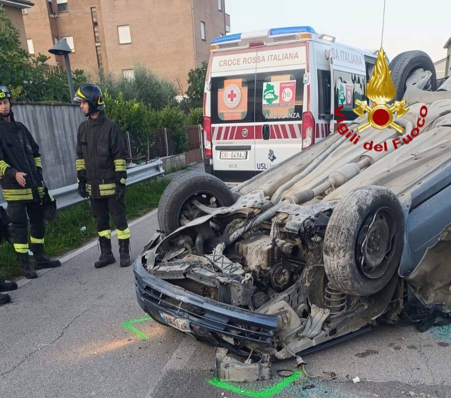 Auto con 3 persone si ribalta in via Hoffmann, c’è un ferito