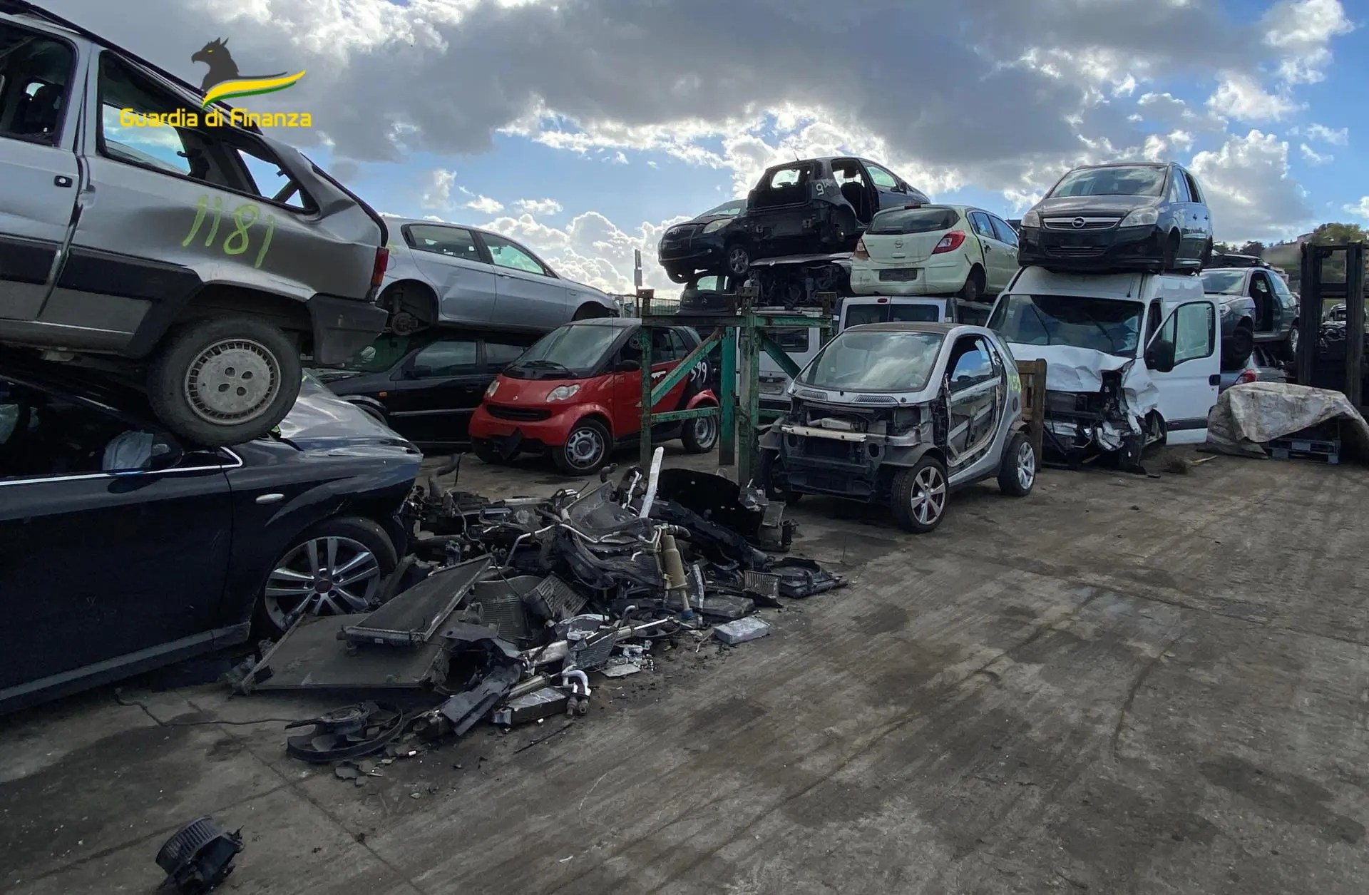 I finanzieri del Comando Provinciale di Perugia hanno sottoposto a sequestro un’area di circa 3000 mq sita nei pressi di Spoleto, adibita a deposito di rottami e cascami, sulla quale erano depositati oltre 200 automezzi e un grande quantitativo di pezzi di ricambio per autovetture.