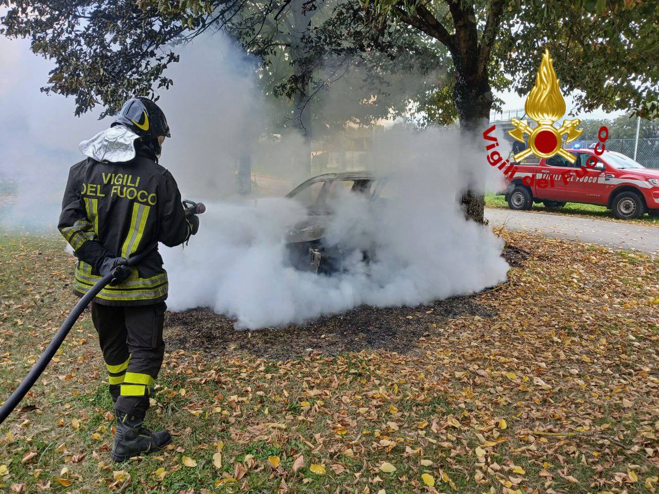 I vigili del fuoco della sede centrale di Perugia erano intervenuti presso il campo sportivo di Pietrafitta per spegnere le fiamme che avevano avvolto un’auto.