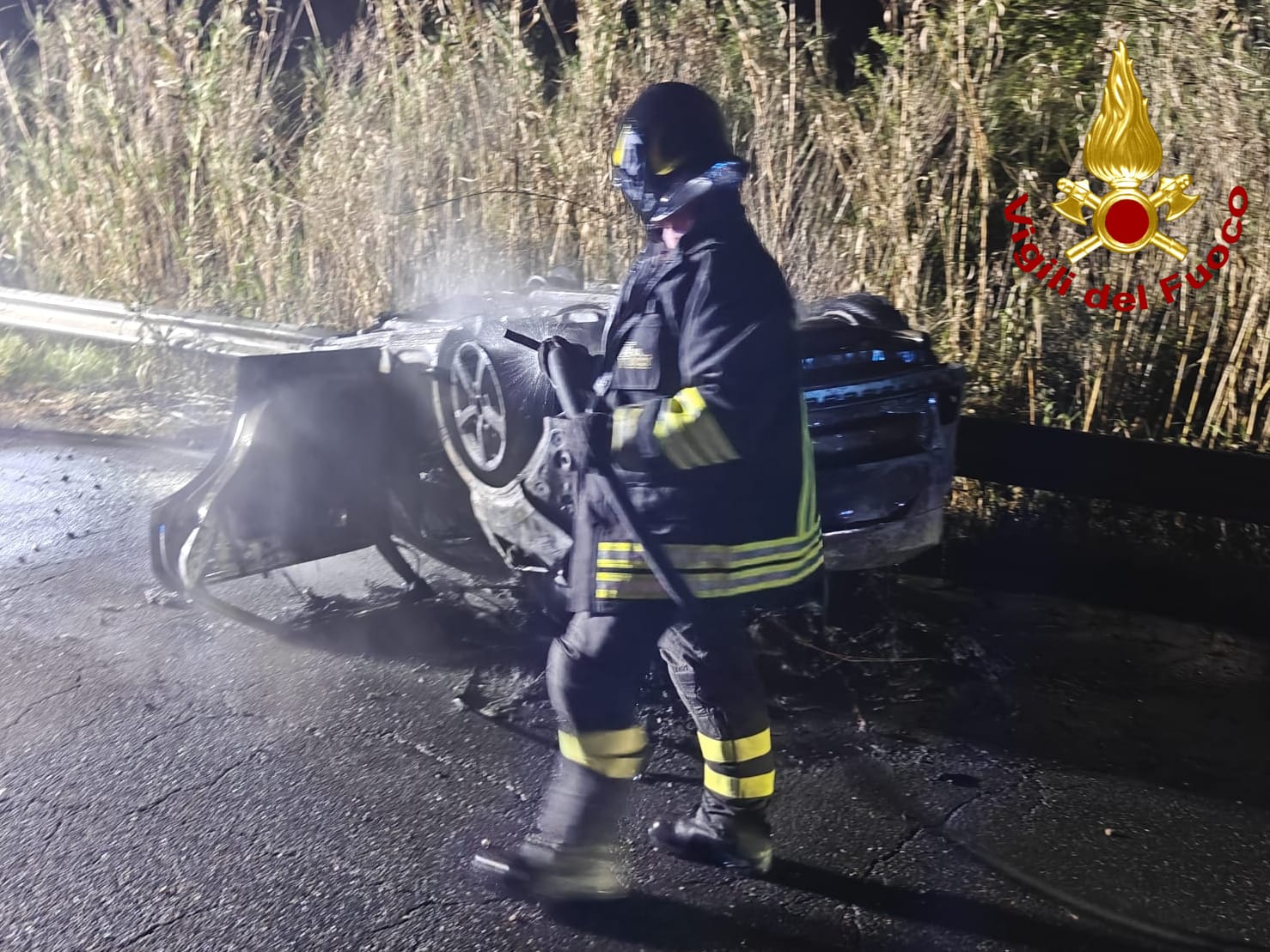 Il giovane, alla guida di una Audi Q2, è finito fuori strada, con il veicolo che prima ha impattato prima con le rocce al lato della carreggiata, poi si è ribaltato, finendo la sua corsa al lato opposto sul guard-rail. A seguito dell’impatto, l’auto ha preso fuoco, con le fiamme che poi si sono propagate alla scarpata sottostante.